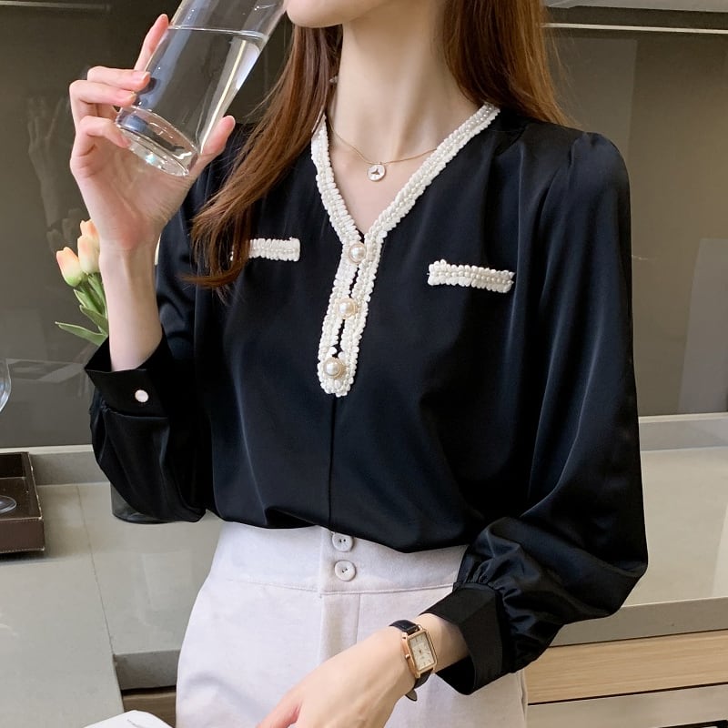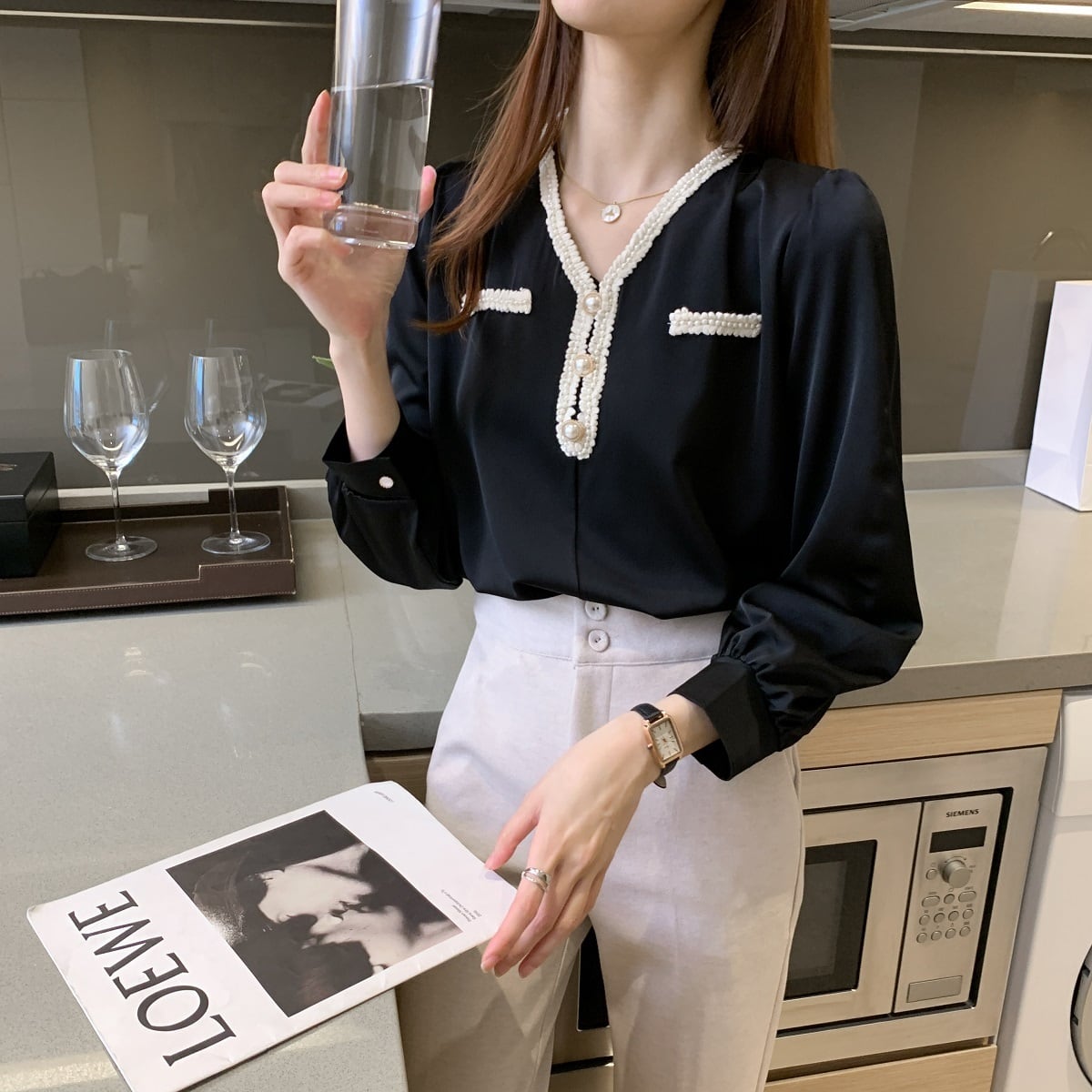トップス シャツ ブラウス レディース 前開き ロング 長袖 Vネック 襟付き 角襟 オーバーサイズ フェミニン ストリート ボーイフレンド ボタン ヴィンテージ アメカジ かわいい 大人可愛い きれいめ シンプル カジュアル おしゃれ かっこいい レトロ こなれ感 ラフ メンズライク マニッシュ ボーイッシュ ルーズ クール 抜け感 ベーシック アクティブ ナチュラル 無地 春 秋 お出かけ 重ね着 韓国 オルチャン 体型カバー 普段使い 着回し レイヤード S M L XL 黒 ブラック カーキ