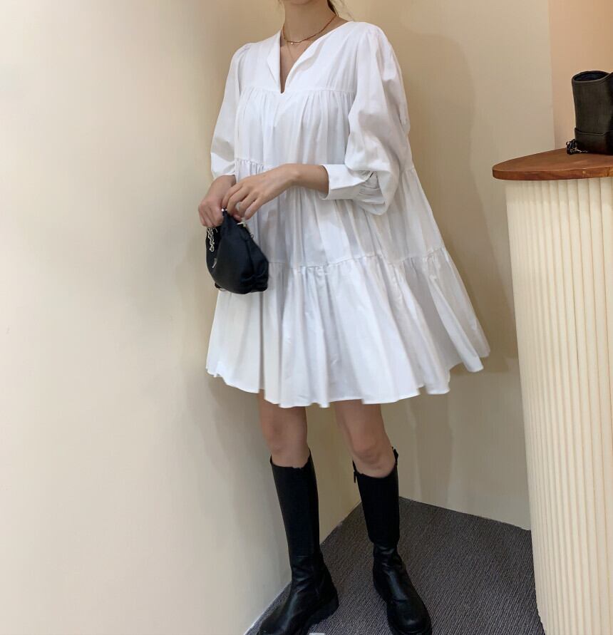 Aラインが可愛いワンピース 合わせる小物次第で様々なコーデを楽しめます! 【カラー】ブラック ホワイト カーキ ※モニターの仕様や、角度によって多少色合いが異なる場合がございます。 【サイズ (cm) 】ワンサイズ 長さ:86 バスト:112 肩幅:34 袖丈:57 ※サイズは平置きで測定しております。測り方や位置、素材の性質によりサイズに1-4cm程の誤差が生じる場合がございます。 【商品について】 ・こちらの商品は海外お取り寄せ商品です。 ・お手元に到着するまでに10-25日程度お時間をいただいておりますが、さらにお時間がかかってしまう場合や、欠品や不具合などにより商品をご用意できずご注文をキャンセルとさせていただく場合もございます。予めご了承下さいませ。 ・商品はすべて検品を行なった上で発送しております。到着後は、できるだけ早めに商品の状態をご確認願います。 ・海外製品のため日本製よりも縫製や糸の始末が甘い、微細なほつれ、匂いや微細な汚れなどといった場合がございます。ご理解、ご了承いただけますようお願いいたします。 ・万が一、初期不良や誤納品がございましたら、商品到着より5日以内にお知らせ下さい。誠意を持って早急に対応させていただきます。 【返品について】 ご注文確定後のキャンセルや内容変更はお受けすることができません。 不良品または誤納品の場合を除き、返品・交換はお受けできませんのでご了承ください。 何かご不明な点などがございましたら、お気軽にお問い合せくださいませ。 ts-957