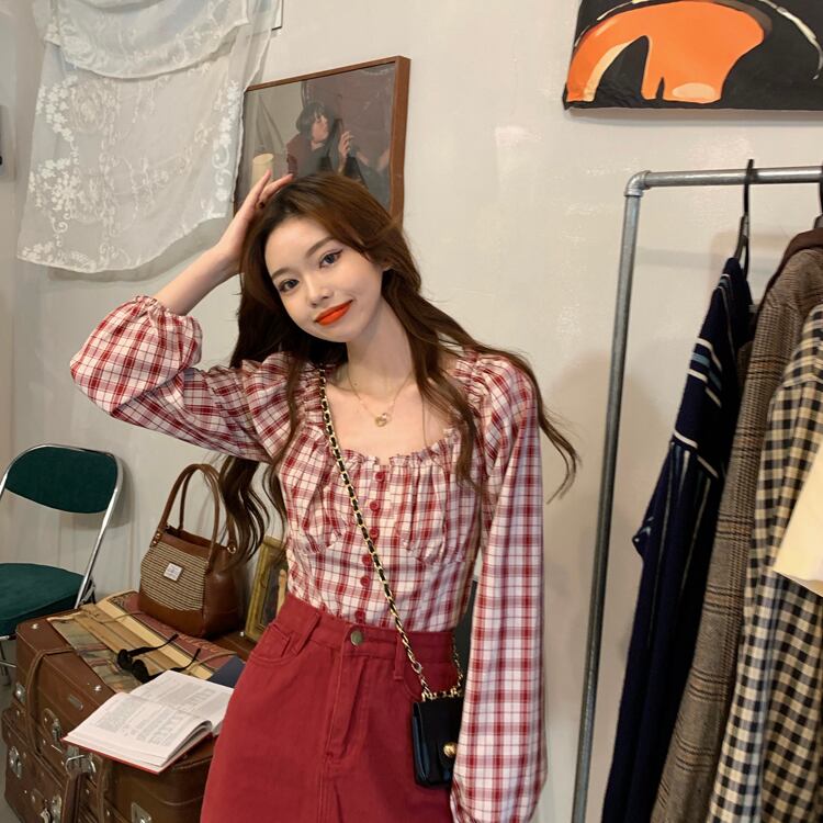 トップス レディース エレガント レース スクエアネック チェック柄 チェック 上品 休日 薄手 ブラウス 秋冬 かっこかわいい 可愛い 大人可愛い きれいめ シンプル お洒落 大人女子 20代 30代 韓国 韓国系 韓国風 韓国ファッション オルチャン お揃い 双子 双子コーデ コーデ ファッション カジュアル 大人 上品 学生 通学 通勤 OL ママファッション ママコーデ 公園デビュー ラフ 普段着 おしゃれ お洒落 かっこいい 大人女子 旅行 着回し 普段使い 重ね着 スタイル 楽ちん モテ