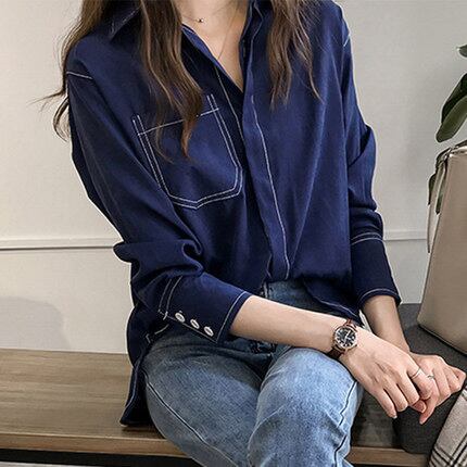 トップス シャツ ブラウス レディース 前開き ロング 長袖 Vネック 襟付き 角襟 オーバーサイズ フェミニン ストリート ボーイフレンド ボタン ヴィンテージ アメカジ かわいい 大人可愛い きれいめ シンプル カジュアル おしゃれ かっこいい レトロ こなれ感 ラフ メンズライク マニッシュ ボーイッシュ ルーズ クール 抜け感 ベーシック アクティブ ナチュラル 無地 春 秋 お出かけ 重ね着 韓国 オルチャン 体型カバー 普段使い 着回し レイヤード S M L XL 黒 ブラック カーキ