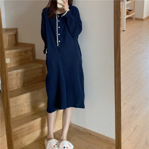 ルームウェア パジャマ 寝巻き ナイトウェア ロング ロング丈 ミドル丈 パンツ ワンピース 長袖 ヘンリーネック 襟なし ストレート レース ふわふわ 上下セット かわいい 大人可愛い シンプル カジュアル ラフ ラブリー キュート ガーリー 抜け感 無地 春 秋 10代 20代 30代 レディース ママ キッズ 女の子 お泊まり お揃い 双子 韓国系 ファッション コーデ 楽ちん モテ 送料無料 ネイビー