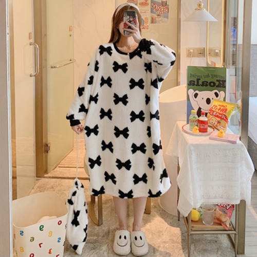 ワンピース ルームウェア パジャマ 寝巻き ナイトウェア ネグリジェ ロング ロング丈 長袖 クルーネック 襟なし ストレート ワイド リボン もこもこ モコモコ ふわふわ かわいい 大人可愛い きれいめ シンプル カジュアル ラフ ラブリー キュート ガーリー ルーズ 抜け感 柄 秋 冬 10代 20代 30代 レディース ママ キッズ 女の子 お泊まり 普段使い お揃い 双子 韓国系 ファッション コーデ 楽ちん 暖かい 防寒 体型カバー 送料無料 M L XL 2XL ゆったり ゆる ホワイト