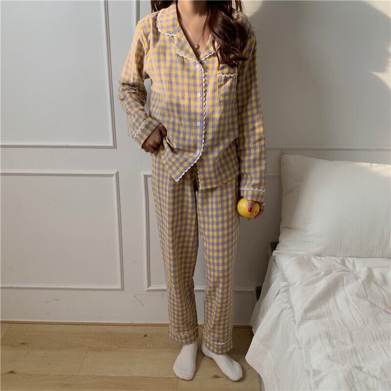 定番の前開き上下セットパジャマ。 くすみカラーの落ち着いた色味とチェック柄デザインがキュートな一着。 色展開 パープル イエロー サイズ ワンサイズ サイズ(cm) ワンサイズ /着丈 65 /バスト 114 /肩幅 41 /袖丈 56 /パンツ丈 94 ※モニターの仕様や、角度によって多少色合いが異なる場合がございます。 ※サイズは平置きで測定しております。測り方や位置、素材の性質によりサイズに1-4cm程の誤差が生じる場合がございます。 【商品について】 ・こちらの商品は海外お取り寄せ商品です。 ・お手元に到着するまでに10-25日程度お時間をいただいておりますが、さらにお時間がかかってしまう場合や、欠品や不具合などにより商品をご用意できずご注文をキャンセルとさせていただく場合もございます。予めご了承下さいませ。 ・商品はすべて検品を行なった上で発送しております。到着後は、できるだけ早めに商品の状態をご確認願います。 ・海外製品のため日本製よりも縫製や糸の始末が甘い、微細なほつれ、匂いや微細な汚れなどといった場合がございます。ご理解、ご了承いただけますようお願いいたします。 ・万が一、初期不良や誤納品がございましたら、商品到着より5日以内にお知らせ下さい。誠意を持って早急に対応させていただきます。 【返品について】 ご注文確定後のキャンセルや内容変更はお受けすることができません。 不良品または誤納品の場合を除き、返品・交換はお受けできませんのでご了承ください。 何かご不明な点などがございましたら、お気軽にお問い合せくださいませ。 rw-116