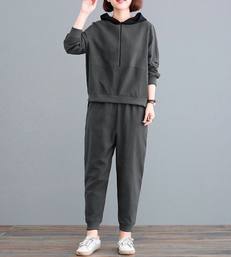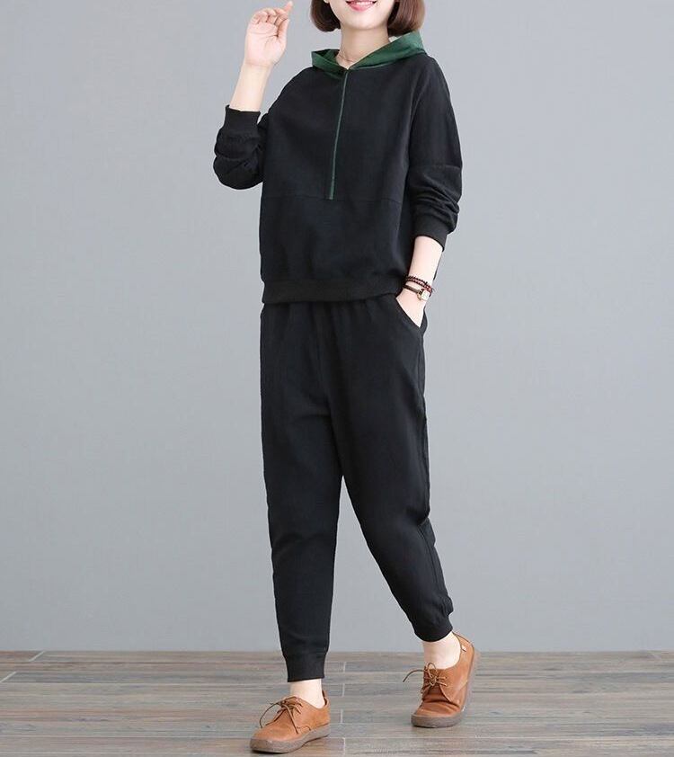 トレーニングウェア フィットネス 上下セット 2点セット ウェア ジム トップス パンツ ボトムス スウェット ジャージ レディース フルレングス 長袖 フード ストリート ジッパー ハーフジップ かわいい 大人可愛い きれいめ シンプル カジュアル こなれ感 ラフ メンズライク マニッシュ ボーイッシュ スポーティー ルーズ ベーシック アクティブ ウォーキング ジョギング スポーツ 室内 重ね着 楽ちん 普段使い M L XL 2XL 3XL 4XL 大きいサイズ 白 ホワイト 黒 ブラック グレー