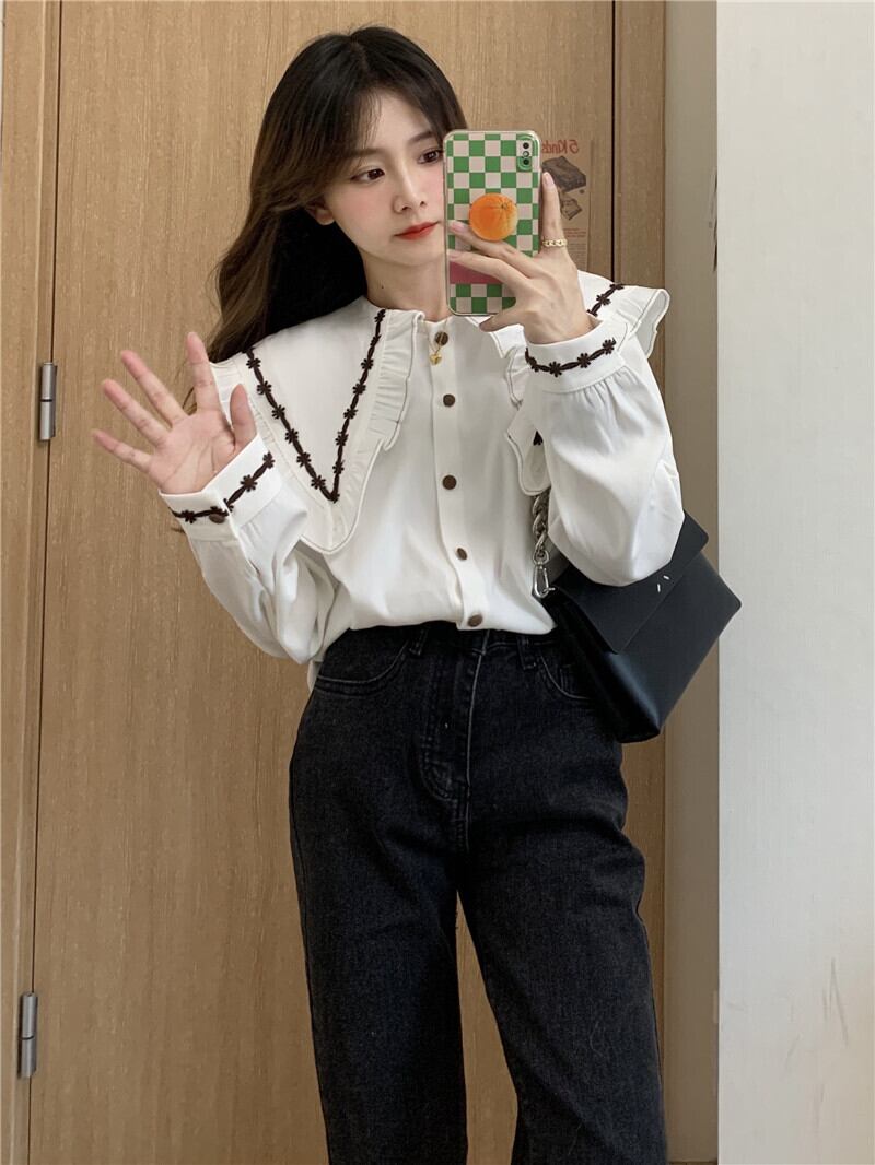 トップス ブラウス レディース 襟 ゆったり 可愛い 大人可愛い きれいめ シンプル お洒落 大人女子 20代 30代 オフィス ビジネス OL デート 休日 お出かけ 女子会 韓国 韓国系 コーデ ファッション カジュアル 大人 上品 学生 通学 おしゃれ お洒落 かっこいい 大人女子 旅行 着回し 普段使い 重ね着 韓国 韓国系 オルチャン ファッション コーデ スタイル 楽ちん モテ 新作 S M L XL