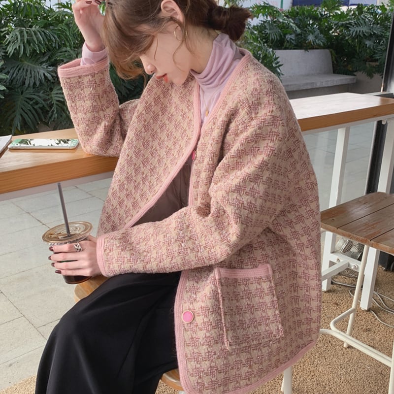 アウター レディース コート ジャケット 長袖 柄 チェック 格子柄 春 秋 前開き 大人可愛い きれいめ シンプル カジュアル 大人 上品 おしゃれ お洒落 レトロ 大人女子 こなれ感 ラフ 主役級 存在感 袖あり 黒 ブラック ピンク 大人カラー 春カラー フリーサイズ 10代 20代 30代 40代 50代 女性用 オフィス OL 通勤 学生 通学 デート お出かけ 公園デビュー 女子会 着回し 普段使い 重ね着 双子 韓国 韓国系 オルチャン ファッション コーデ スタイル 楽ちん トレンド
