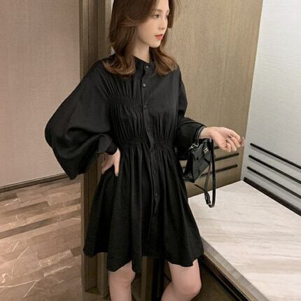 ワンピース レディース フレア ミニ ショート 7分袖 長袖 ボリューム袖 バルーン袖 ラウンドネック フレア セミフレア Aライン 切り替え ドッキング かわいい 大人可愛い きれいめ シンプル カジュアル おしゃれ こなれ感 ラフ ガーリー ルーズ 存在感 抜け感 ヴィンテージ キュート ベーシック アメリカン プレッピー アクティブ ナチュラル デート お出かけ 休日 普段使い 着回し インスタ映え S M L XL 2XL 3XL 小さいサイズ 大きいサイズ ビッグ ゆったり ゆる 黒 ブラック