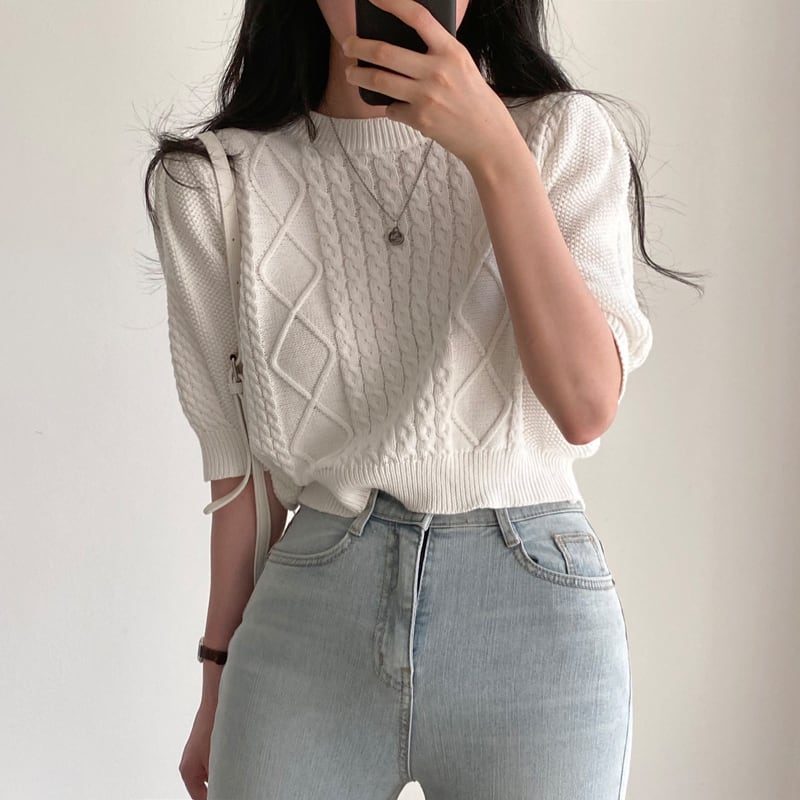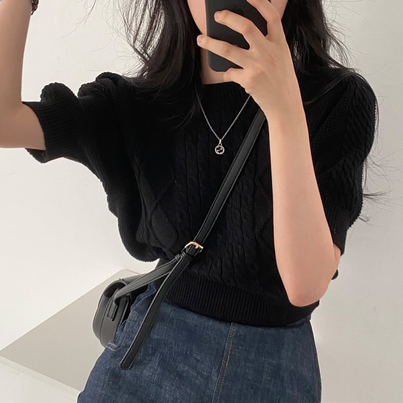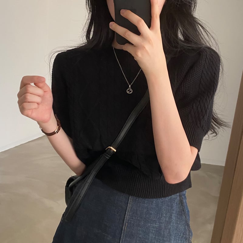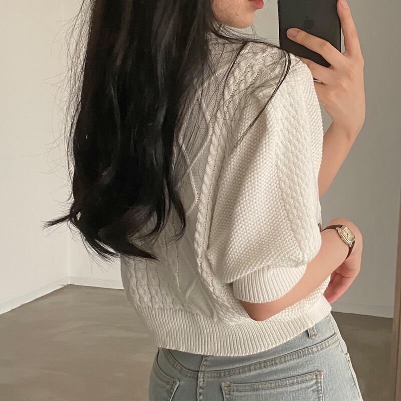 トップス カットソー ニット ショート丈 半袖 無地 編み込み かわいい 大人可愛い シンプル カジュアル 大人 上品 おしゃれ お洒落 かっこいい レトロ エキゾチック 大人女子 こなれ感 ラフ メンズライク ボーイッシュ ラブリー キュート ガーリー ルーズ 存在感 抜け感 ラウンドネック 襟なし 袖あり 萌袖 白トップス サマーニット 白 ホワイト 黒 ブラック 灰色 グレー 大人カラー 10代 20代 30代 40代 50代 女性用 女子会 お泊まり 休日 着回し 普段使い 双子 韓国