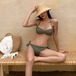水着 ビキニ スイムウェア バンドゥビキニ セパレート バンドゥ ホルターネック リボン バックリボン 胸元 谷間魅せ セット 上下セット かわいい 大人可愛い シンプル カジュアル ナチュラル 大人っぽい おしゃれ お洒落 ラブリー キュート ガーリー エキゾチック アジアン 柄 花柄 小花柄 10代 20代 30代 レディース 夏 海 ビーチ プール リゾート スタイルアップ 美スタイル 韓国 オルチャン ファッション M L XL 緑 グリーン