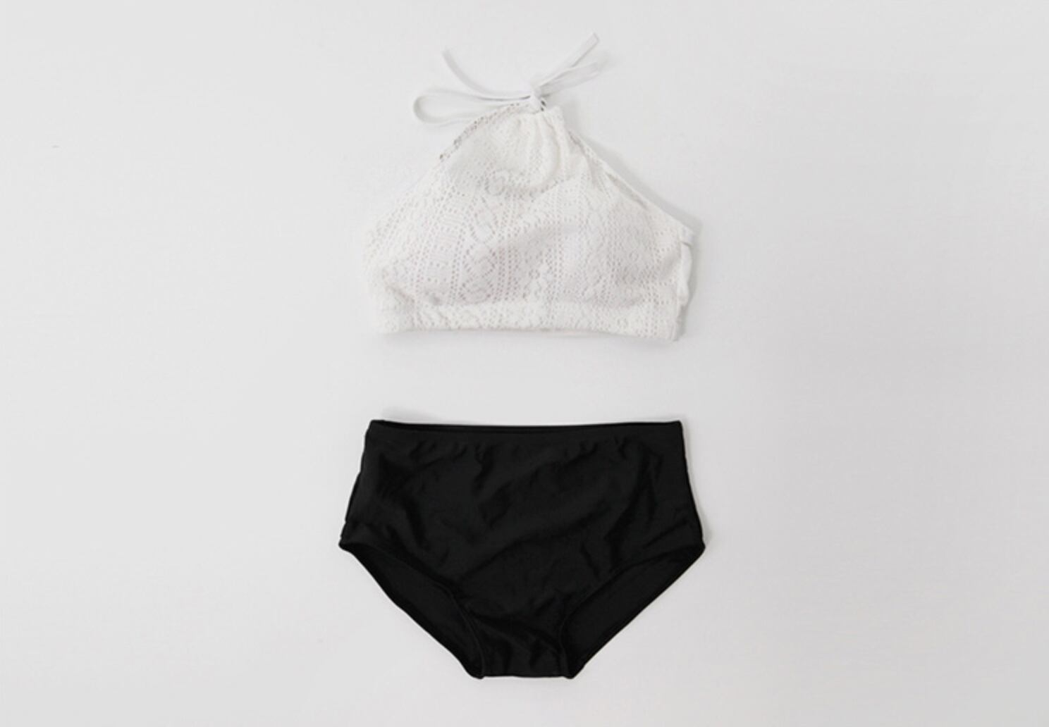 水着 ビキニ スイムウェア タンキニ セパレート ビスチェ ホルターネック レース 刺繍 バックリボン 透け感 シースルー 胸元 セット 上下セット かわいい 大人可愛い きれいめ シンプル ナチュラル 華やか 大人っぽい おしゃれ お洒落 存在感 女っぽ ラブリー キュート 無地 20代 30代 レディース 夏 海 ビーチ プール リゾート 韓国 オルチャン ファッション コーデ スタイル 高見え 格上げ M L XL 白 ホワイト 黒 ブラック モノトーン