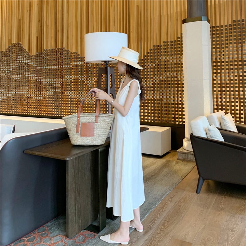 キャミソールワンピース ロングワンピース ワンピース ロング丈 袖なし ノースリーブ Vネック 襟なし セミフレア Aライン 大人可愛い きれいめ シンプル カジュアル 大人 おしゃれ お洒落 大人女子 こなれ感 ラフ 抜け感 無地 夏 20代 30代 40代 レディース デート お出かけ 女子会 休日 イベント リゾート 旅行 海 プール 韓国 オルチャン コーデ スタイル 楽ちん S M L 白 ホワイト