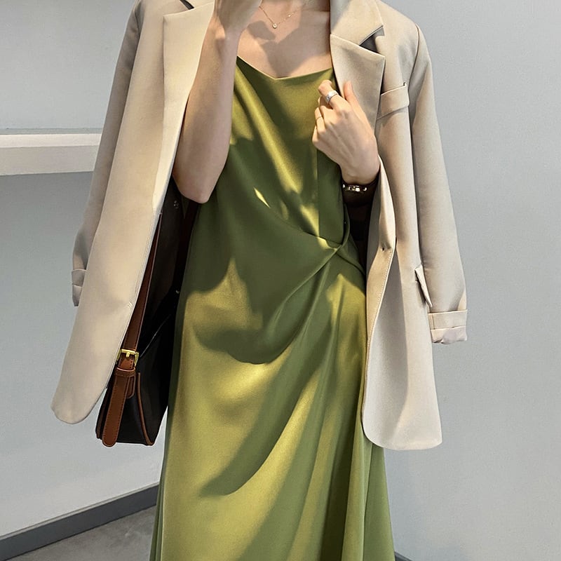 コートやジャケットに合わせてフォーマルに。 パーティやお呼ばれの席にもおすすめです。 色展開 グリーン ブラック シャンパン サイズ M L サイズ(cm) M:着丈102 バスト82 L: 着丈103 バスト84 ※モニターの仕様や、角度によって多少色合いが異なる場合がございます。 ※サイズは平置きで測定しております。測り方や位置、素材の性質によりサイズに1-4cm程の誤差が生じる場合がございます。 【商品について】 ・こちらの商品は海外お取り寄せ商品です。 ・お手元に到着するまでに10-25日程度お時間をいただいておりますが、さらにお時間がかかってしまう場合や、欠品や不具合などにより商品をご用意できずご注文をキャンセルとさせていただく場合もございます。予めご了承下さいませ。 ・商品はすべて検品を行なった上で発送しております。到着後は、できるだけ早めに商品の状態をご確認願います。 ・海外製品のため日本製よりも縫製や糸の始末が甘い、微細なほつれ、匂いや微細な汚れなどといった場合がございます。ご理解、ご了承いただけますようお願いいたします。 ・万が一、初期不良や誤納品がございましたら、商品到着より5日以内にお知らせ下さい。誠意を持って早急に対応させていただきます。 【返品について】 ご注文確定後のキャンセルや内容変更はお受けすることができません。 不良品または誤納品の場合を除き、返品・交換はお受けできませんのでご了承ください。 何かご不明な点などがございましたら、お気軽にお問い合せくださいませ。 op-1084