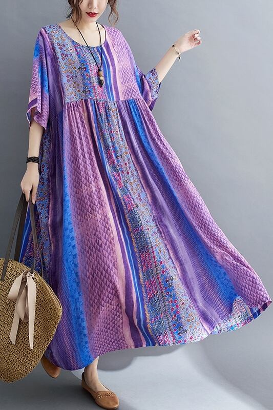 カラフルロングワンピース ワンピース フレアワンピース ロング ロング丈 マキシ マキシ丈 袖あり 半袖 五分袖 ラウンドネック フレア 綿 麻 リネン かわいい 大人可愛い シンプル カジュアル 大人 おしゃれ お洒落 アジアン エスニック エキゾチック 大人可愛い 大人女子 こなれ感 ラフ 個性的 主役級 存在感 柄 春 秋 10代 20代 30代 レディース 学生 通学 デート お出かけ 女子会 休日 着回し 普段使い ワンサイズ