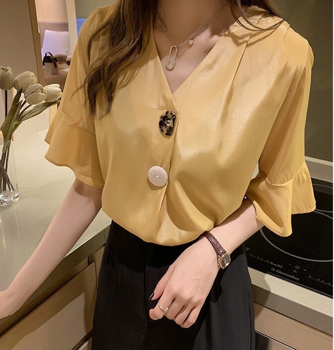 トップス シャツ ブラウス プルオーバー レディース ロング 5分袖 Vネック 角襟 オーバーサイズ シフォン きれいめ シンプル カジュアル 上品 おしゃれ かっこいい レトロ ラフ ガーリー 抜け感 キュート ベーシック アクティブ ロマンティック ナチュラル 無地 春 夏 デート お出かけ イベント 旅行 休日 カフェ 重ね着 楽ちん 普段使い 着回し レイヤード ロールアップ 定番 ゆったり ゆる フリーサイズ 白 ホワイト 黒 ブラック 黄色 イエロー ピンク レッド ネイビー ベーシックカラー