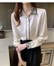 トップス シャツ ブラウス レディース 前開き ロング 長袖 Vネック 襟付き 角襟 オーバーサイズ フェミニン ストリート ボーイフレンド ボタン ヴィンテージ アメカジ かわいい 大人可愛い きれいめ シンプル カジュアル おしゃれ かっこいい レトロ こなれ感 ラフ メンズライク マニッシュ ボーイッシュ ルーズ クール 抜け感 ベーシック アクティブ ナチュラル 無地 春 秋 お出かけ 重ね着 韓国 オルチャン 体型カバー 普段使い 着回し レイヤード S M L XL 黒 ブラック カーキ