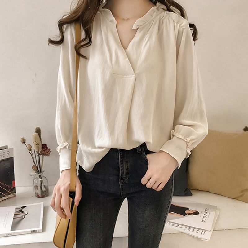 トップス シャツ ブラウス レディース 前開き ロング 長袖 Vネック 襟付き 角襟 オーバーサイズ フェミニン ストリート ボーイフレンド ボタン ヴィンテージ アメカジ かわいい 大人可愛い きれいめ シンプル カジュアル おしゃれ かっこいい レトロ こなれ感 ラフ メンズライク マニッシュ ボーイッシュ ルーズ クール 抜け感 ベーシック アクティブ ナチュラル 無地 春 秋 お出かけ 重ね着 韓国 オルチャン 体型カバー 普段使い 着回し レイヤード S M L XL 黒 ブラック カーキ