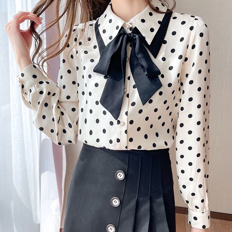 レトロな印象の水玉ブラウス。 胸元のリボンが取り外しできるので、華やかにもシンプルにも着こなせる一着です。 色展開 ホワイト ブラック サイズ展開 S M L XL 2XL サイズ(cm) S /肩幅 33 /バスト 90 /袖丈 57 /着丈 59 M /肩幅 34 /バスト 94 /袖丈 58 /着丈 60 L /肩幅 35 /バスト 98 /袖丈 59 /着丈 61 XL /肩幅 36 /バスト 102 /袖丈 60 /着丈 62 2XL /肩幅 37 /バスト 106 /袖丈 61 /着丈 63 ※モニターの仕様や、角度によって多少色合いが異なる場合がございます。 ※サイズは平置きで測定しております。測り方や位置、素材の性質によりサイズに1-4cm程の誤差が生じる場合がございます。 【商品について】 ・こちらの商品は海外お取り寄せ商品です。 ・お手元に到着するまでに10-25日程度お時間をいただいておりますが、さらにお時間がかかってしまう場合や、欠品や不具合などにより商品をご用意できずご注文をキャンセルとさせていただく場合もございます。予めご了承下さいませ。 ・商品はすべて検品を行なった上で発送しております。到着後は、できるだけ早めに商品の状態をご確認願います。 ・海外製品のため日本製よりも縫製や糸の始末が甘い、微細なほつれ、匂いや微細な汚れなどといった場合がございます。その場合には不具合品の対象外となりますのでご了承ください。 ・万が一、初期不良や誤納品がございましたら、商品到着より5日以内にお知らせ下さい。誠意を持って早急に対応させていただきます。 【返品について】 ご注文確定後のキャンセルや内容変更はお受けすることができません。 不良品または誤納品の場合を除き、返品・交換はお受けできませんのでご了承ください。 何かご不明な点などがございましたら、お気軽にお問い合せくださいませ。 ts-1598