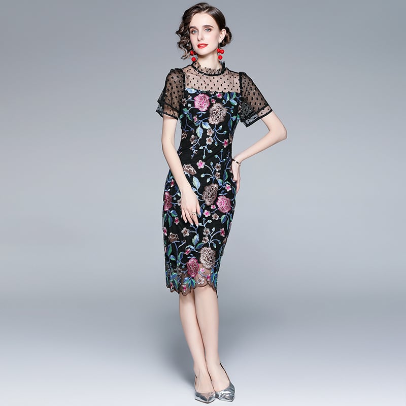 ブラックの生地に花柄刺繍が映えるワンピース 高級感あるエレガントな着こなしができます!!! 【カラー】ブラック 【サイズ (cm) 】 S /ヒップ 70.0 /ウェスト 63.0 /バスト 84.0 /肩幅 34.0 M /ヒップ 72.0 /ウェスト 67.0 /バスト 86.0 /肩幅 35.0 L /ヒップ 76.0 /ウェスト 70.0 /バスト 90.0 /肩幅 36.0 XL /ヒップ 80.0 /ウェスト 73.0 /バスト 94.0 /肩幅 37.0 2XL /ヒップ 84.0 /ウェスト 77.0 /バスト 98.0 /肩幅 38.0 ※モニターの仕様や、角度によって多少色合いが異なる場合がございます。 ※サイズは平置きで測定しております。測り方や位置、素材の性質によりサイズに1-4cm程の誤差が生じる場合がございます。 【商品について】 ・こちらの商品は海外お取り寄せ商品です。 ・お手元に到着するまでに10-25日程度お時間をいただいておりますが、さらにお時間がかかってしまう場合や、欠品や不具合などにより商品をご用意できずご注文をキャンセルとさせていただく場合もございます。予めご了承下さいませ。 ・商品はすべて検品を行なった上で発送しております。到着後は、できるだけ早めに商品の状態をご確認ください。 ・海外製品のため日本製よりも縫製や糸の始末が甘い、微細なほつれ、匂いや微細な汚れなどといった場合がございます。ご理解、ご了承いただけますようお願いいたします。 ・製造時期、工場の都合等で一部デザインが変更になることがございます。 ・万が一、初期不良や誤納品がございましたら、商品到着より5日以内にお知らせ下さい。誠意を持って早急に対応させていただきます。 【返品について】 ・ご注文確定後のキャンセルや内容変更はお受けすることができません。確定前に良くご確認ください。 ・不具合品や誤納品の返品以外に、お客様都合による返品にも対応しております。 何かご不明な点などがございましたら、お気軽にお問い合せくださいませ。 op-1180