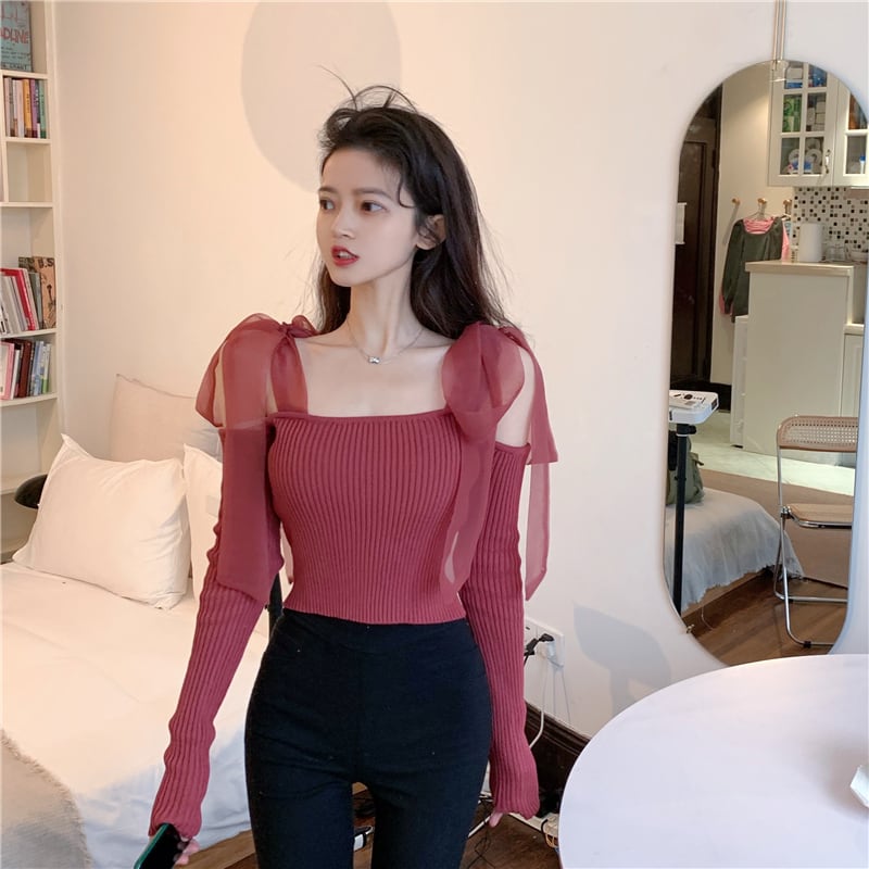 トップス ニットソー セーター ショート ショート丈 袖あり 長袖 スタンドカラー シフォン フリル リボン ニット かわいい 大人可愛い きれいめ 上品 お洒落 大人女子 ラブリー キュート ガーリー セクシー 主役級 存在感 無地 秋 冬 誕生日 クリスマス バレンタイン 10代 20代 30代 40代 50代 60代 レディース 女性用 学生 デート お出かけ 女子会 休日 イベント レストラン ショッピング 着回し 普段使い モテ ギフト インスタ映え サイズ S M L 色展開 ピンク