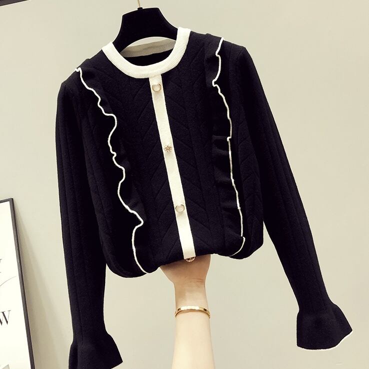 トップス ニットソー セーター 袖あり 長袖 Uネック ラウンドネック フリル ニット かわいい 大人可愛い 上品 レトロ 大人女子 ラブリー キュート ガーリー 無地 秋 冬 誕生日 クリスマス バレンタイン 10代 20代 30代 40代 50代 60代 レディース 女性用 OL 学生 デート お出かけ 女子会 休日 イベント 旅行 レストラン ショッピング 普段使い 重ね着 暖かい モテ サイズ フリーサイズ ワンサイズ 色展開 ホワイト ブラック 赤 レッド 黄色 イエロー