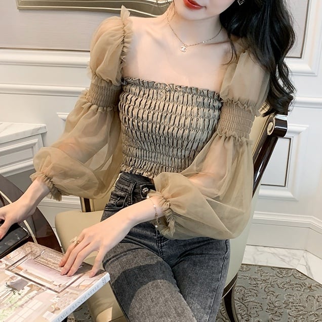 トップス ブラウス カットソー ミニ ミニ丈 ショート ショート丈 袖あり 長袖 スクエアネック チュール シフォン バックシャン バックコンシャス リブ 透け感 シースルー 伸縮性 大人可愛い 大人 おしゃれ お洒落 かっこいい 大人女子 こなれ感 クール セクシー 存在感 無地 夏 10代 20代 30代 40代 レディース 女性用 デート お出かけ 休日 イベント 旅行 ホテル レストラン 着回し 普段使い モテ プレゼント ギフト インスタ映え サイズ S M L XL 色展開 茶色 ブラウン