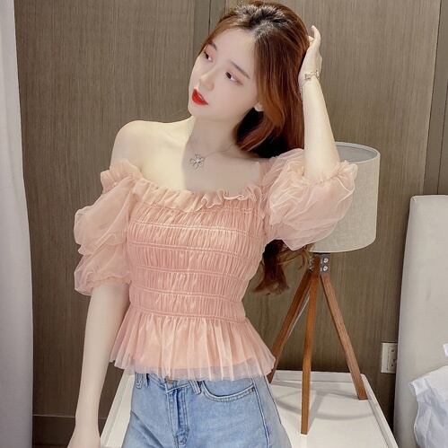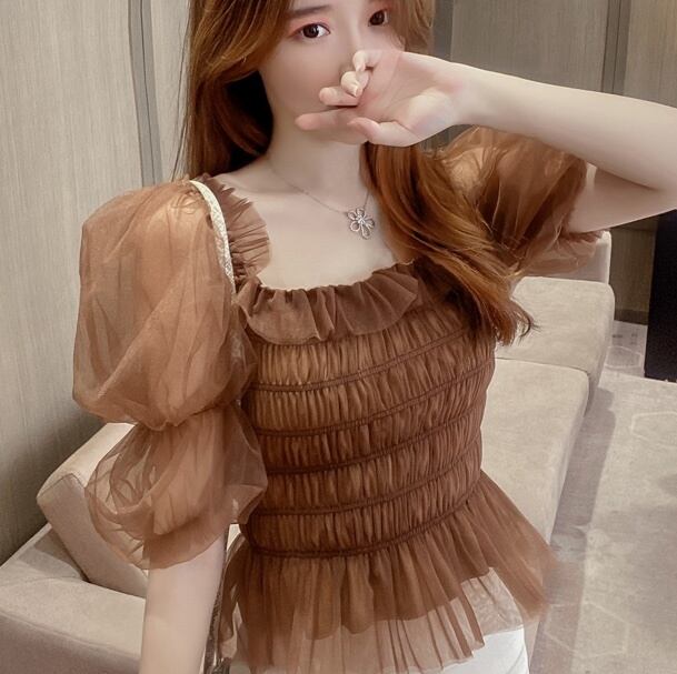トップス カットソー 袖あり 半袖 5分袖 五分袖 ボリューム袖 パフスリーブ スクエアネック シフォン フリル ウエストマーク リブ かわいい 大人可愛い おしゃれ お洒落 ラブリー キュート ガーリー セクシー エレガント 存在感 抜け感 無地 春 夏 10代 20代 30代 レディース 女性用 デート お出かけ お泊まり 休日 イベント リゾート 旅行 ホテル レストラン ショッピング 着回し 普段使い お揃い モテ インスタ映え サイズ フリーサイズ ワンサイズ 色展開 茶色 ブラウン ピンク