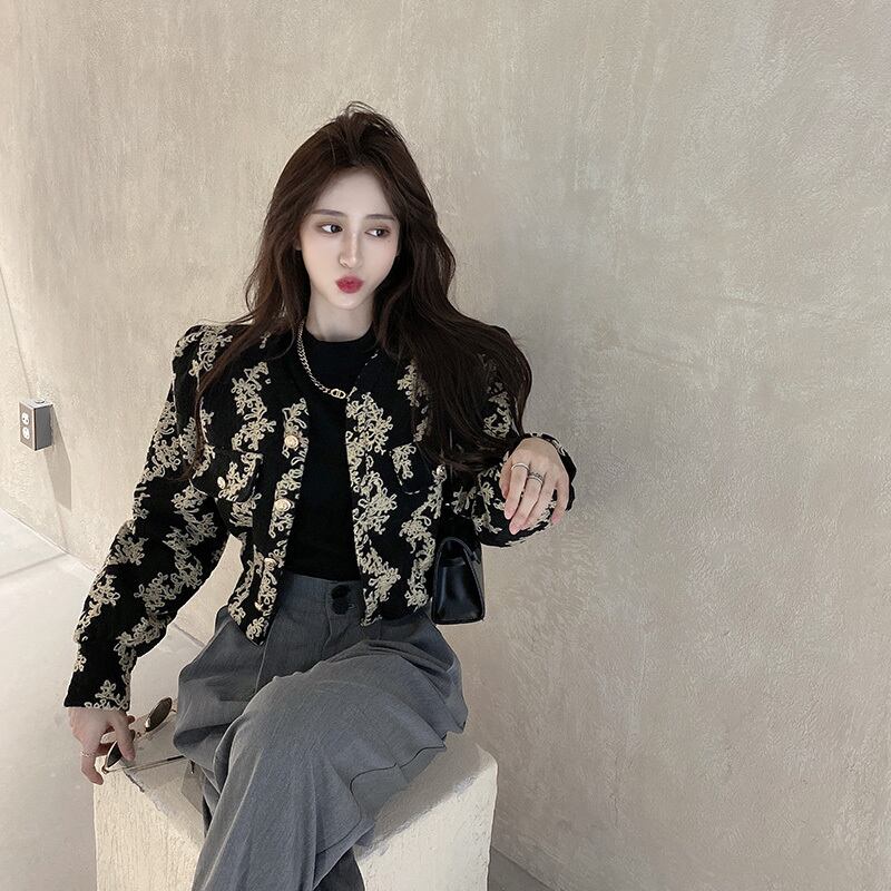 アウター ブルゾン スーツ ショート ショート丈 袖あり 長袖 スタンドカラー ハイネック 刺繍 前開き かわいい 大人可愛い 大人 上品 おしゃれ お洒落 かっこいい 個性的 セクシー エレガント 主役級 存在感 柄 花柄 小花柄 フラワー ボタニカル 春 秋 冬 10代 20代 30代 40代 50代 60代 レディース 女性用 デート お出かけ お泊まり 休日 パーティー イベント 着回し 普段使い 重ね着 インスタ映え サイズ フリーサイズ ワンサイズ 色展開 黒 ブラック 灰色 グレー