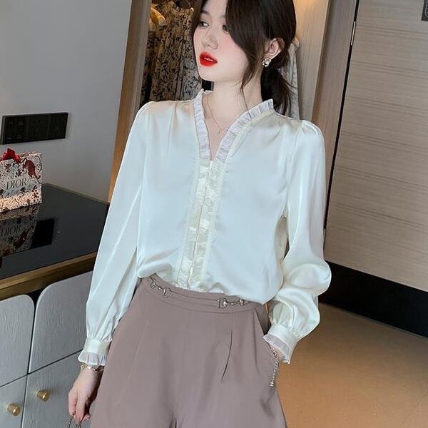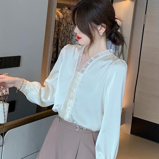 トップス シャツ ブラウス レディース 前開き 長袖 Vネック 襟付き 角襟 オーバーサイズ フェミニン ストリート ボーイフレンド かわいい 大人可愛い きれいめ シンプル カジュアル 上品 おしゃれ かっこいい レトロ こなれ感 メンズライク マニッシュ ボーイッシュ ガーリー ヴィンテージ キュート カレッジ風 学生風 ベーシック アメリカン アクティブ ナチュラル 無地 お出かけ 休日 重ね着 楽ちん 体型カバー 普段使い 着回し レイヤード 定番 茶色 ブラウン グレー オフホワイト ブルー