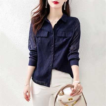 トップス シャツ ブラウス 袖あり 長袖 Vネック 襟付き サテン きれいめ 大人可愛い 大人 上品 おしゃれ お洒落 かっこいい クール エレガント フォーマル とろみ感 入園式 入学式 ストライプ 春 秋 冬 10代 20代 30代 40代 50代 60代 レディース 女性用 ママ OL 学生 デート お出かけ 休日 パーティー イベント ショッピング 着回し 普段使い 重ね着 モテ プレゼント ギフト インスタ映え サイズ S M L XL 2XL ネイビー