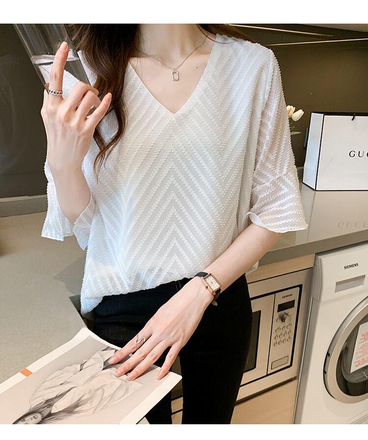 トップス シャツ ブラウス プルオーバー レディース ロング 5分袖 Vネック 角襟 オーバーサイズ シフォン きれいめ シンプル カジュアル 上品 おしゃれ かっこいい レトロ ラフ ガーリー 抜け感 キュート ベーシック アクティブ ロマンティック ナチュラル 無地 春 夏 デート お出かけ イベント 旅行 休日 カフェ 重ね着 楽ちん 普段使い 着回し レイヤード ロールアップ 定番 ゆったり ゆる フリーサイズ 白 ホワイト 黒 ブラック 黄色 イエロー ピンク レッド ネイビー ベーシックカラー