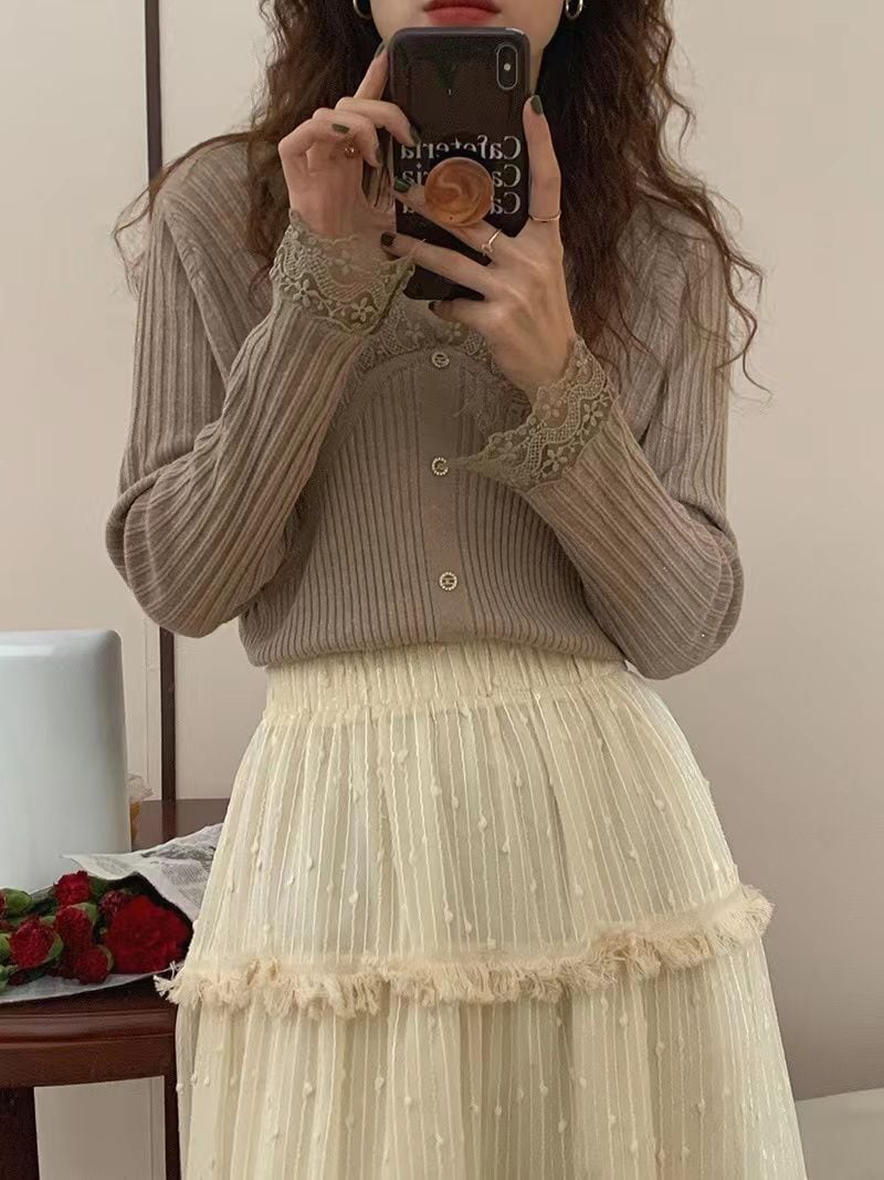 トップス ブラウス カーディガン ニットカーディガン ニットトップス 袖あり 長袖 Vネック きれいめ 白トップス レース 大人可愛い 大人 上品 おしゃれ お洒落 フォーマル とろみ感 春 秋 冬 10代 20代 30代 40代 50代 60代 レディース 女性用 ママ OL 学生 デート お出かけ 休日 パーティー イベント ワンサイズ 白 ホワイト キャメル ブラック 黒 ショッピング 着回し 普段使い 重ね着 モテ インスタ映え