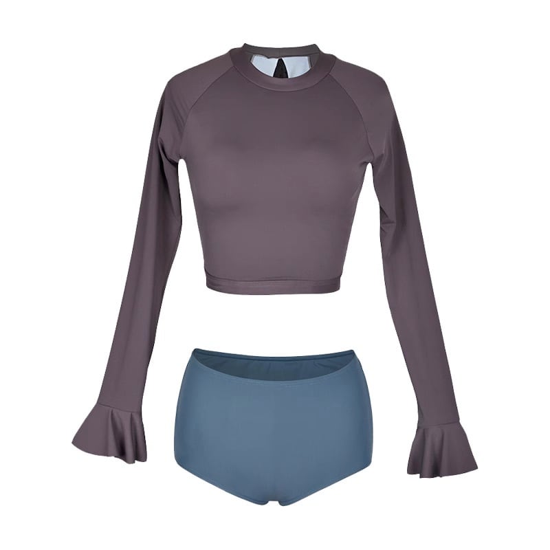 水着 ビキニ スイムウェア レディース タンキニ 体型カバー セパレート パッド付き 長袖 チュール バックシャン ハイウエスト シースルー メッシュ セット ツーピース 上下セット かわいい 大人可愛い 大人っぽい おしゃれ お洒落 存在感 ラブリー キュート ガーリー 個性的 クール モード系 スタイリッシュ モダン かっこいい トレンド ドット 水玉 無地 リゾート 旅行 温泉 プール 夏 海 スタイルアップ インスタ映え こなれ感 S M L XL ブルー 紫 パープル くすみ ベイクドカラー