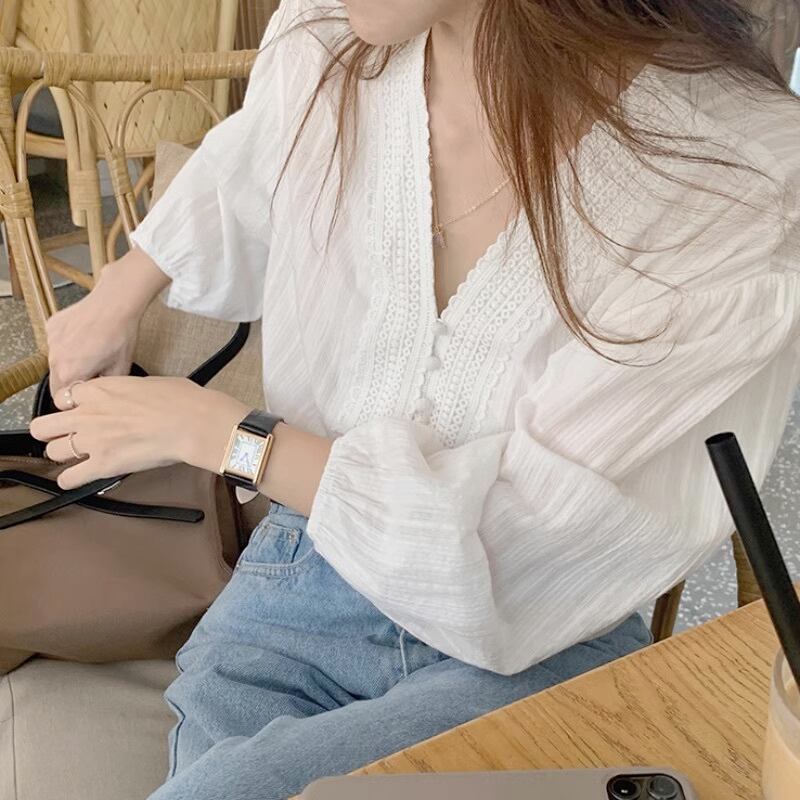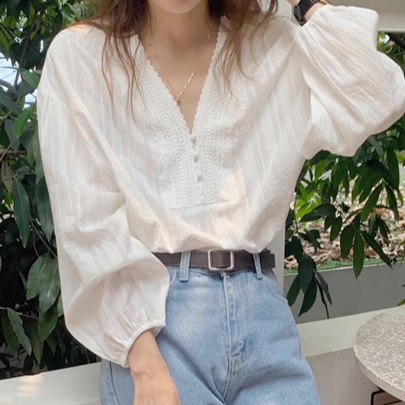 レディース トップス シャツ ブラウス プルオーバー 長袖 パフスリーブ Vネック 刺繍 ボタン 薄手 かわいい 大人可愛い カジュアル おしゃれ こなれ感 ガーリー 抜け感 ラブリー キュート ロマンティック ナチュラル 無地 春 秋 学生 学校 デート お出かけ イベント 旅行 公園 女子会 休日 ガーデン ショッピング お花見 合コン コンパ カフェ 婚活 重ね着 コーデ 楽ちん 体型カバー 普段使い 着回し モテ 清楚 トレンド 流行 インスタ映え ゆったり ゆる フリーサイズ 白 ホワイト