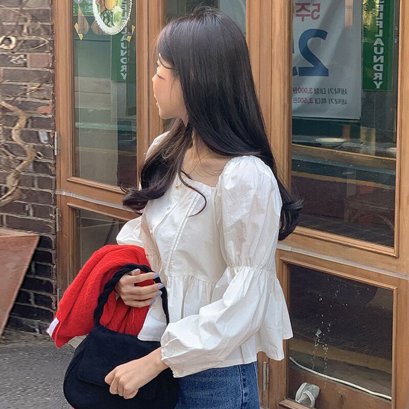 レディース トップス シャツ ブラウス プルオーバー 長袖 パフスリーブ 萌袖 バルーン袖 スクエアネック フェミニン かわいい 大人可愛い シンプル カジュアル 上品 おしゃれ こなれ感 ラフ ガーリー エレガント モダン ラブリー キュート ロマンティック ナチュラル 無地 春 秋 ママ 学生 デート お出かけ お泊まり イベント 旅行 レストラン 公園 女子会 休日 ショッピング お花見 合コン コンパ カフェ 婚活 体型カバー 清楚 トレンド 流行 インスタ映え 定番 フリーサイズ 白 ホワイト