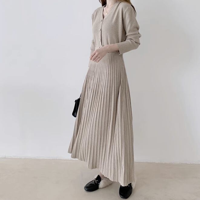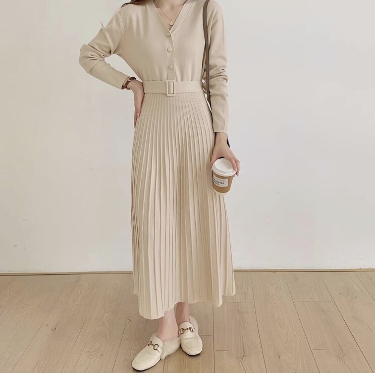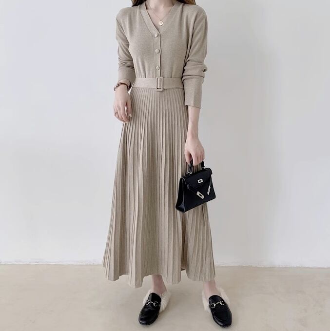 上品でおしゃれな大人可愛いワンピース!エレガントなロング丈マキシスカートとフェミニンなVネックが魅力。プリーツデザインとウエストマークのベルトが抜け感を演出。秋冬の着回しにぴったりな無地カラーで、レストランや女子会、普段使いにも◎。SからXLサイズまで揃い、小さいサイズから大きいサイズまで幅広く対応。ブラック、ベージュ、アプリコットなどの大人カラーがトレンドのインスタ映えを叶えます! 色展開 ブラック ベージュ アプリコット サイズ S M L XL サイズ(cm) S /バスト 88 /肩幅 36 /袖丈 56 /着丈 112 M /バスト 92 /肩幅 37 /袖丈 56.5 /着丈 113 L /バスト 96 /肩幅 38 /袖丈 57 /着丈 114 XL /バスト 100 /肩幅 39 /袖丈 57.5 /着丈 115 ※モニターの仕様や、角度によって多少色合いが異なる場合がございます。 ※サイズは平置きで測定しております。測り方や位置、素材の性質によりサイズに1-4cm程の誤差が生じる場合がございます。 【商品について】 ・こちらの商品は海外お取り寄せ商品です。 ・お手元に到着するまでに10-25日程度お時間をいただいておりますが、さらにお時間がかかってしまう場合や、欠品や不具合などにより商品をご用意できずご注文をキャンセルとさせていただく場合もございます。予めご了承下さいませ。 ・商品はすべて検品を行なった上で発送しております。到着後は、できるだけ早めに商品の状態をご確認願います。 ・海外製品のため日本製よりも縫製や糸の始末が甘い、微細なほつれ、匂いや微細な汚れなどといった場合がございます。その場合には不具合品の対象外となりますのでご了承ください。 ・万が一、初期不良や誤納品がございましたら、商品到着より5日以内にお知らせ下さい。誠意を持って早急に対応させていただきます。 【返品について】 ご注文確定後のキャンセルや内容変更はお受けすることができません。 不良品または誤納品の場合を除き、返品・交換はお受けできませんのでご了承ください。 何かご不明な点などがございましたら、お気軽にお問い合せくださいませ。 op-1270