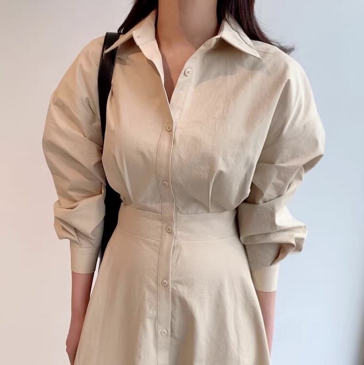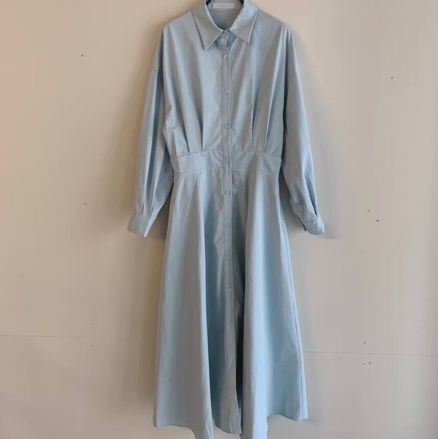 レディース ワンピース シャツワンピ フレア ロング マキシ 長袖 ボリューム袖 Vネック 襟付き フレア Aライン ハイウエスト コンサバ 大人可愛い シンプル 上品 おしゃれ かっこいい こなれ感 マニッシュ クール エレガント モダン 抜け感 都会的 ベーシック ナチュラル 無地 春 秋 授業参観 ママ お出かけ イベント 旅行 女子会 休日 高原 ホテル ショッピング お花見 カフェ お揃い 双子 体型カバー 普段使い 着回し フリーサイズ 白 ホワイト 水色 ブルー アプリコット ライトブルー