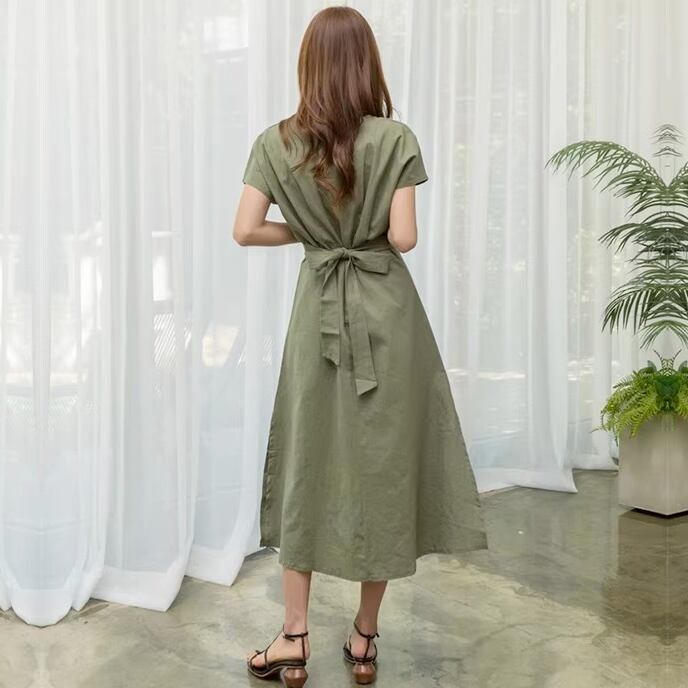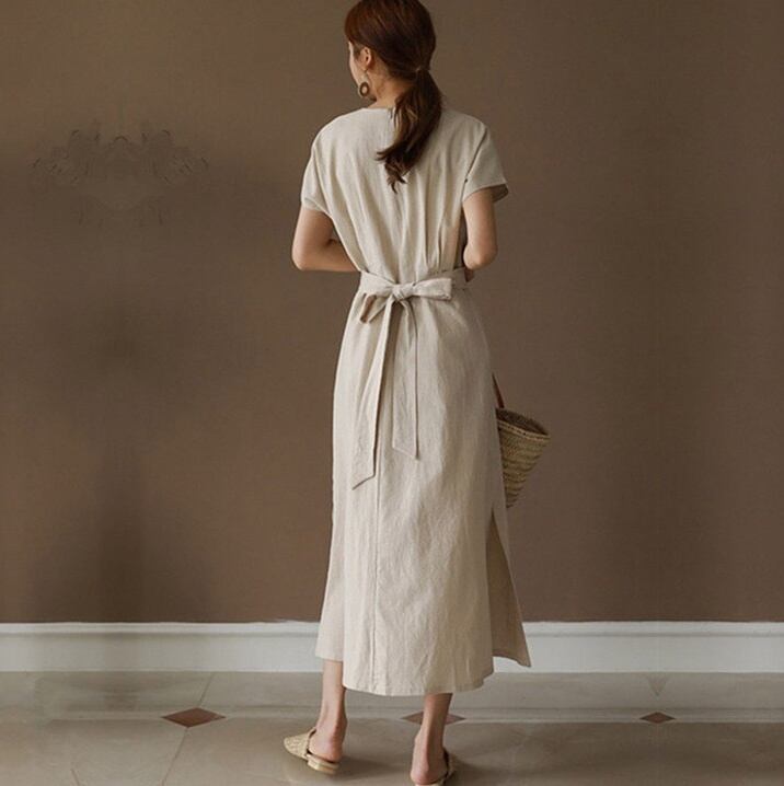 リゾートでの女子会や休日のお出かけにぴったりな、大人可愛いシンプルなレディースワンピース。バックリボンが上品なこなれ感を演出します。ハイウエストデザインとサイドスリットが体型をカバーしながら、エレガントなスタイルを叶えます。リネンコットン素材が涼しく、夏の暑さにも対応。カフェやリゾートで楽ちんにおしゃれを楽しみたい方におすすめのベーシックなアイテムです。 色展開 グリーン ネイビー アプリコット サイズ M L XL 2XL サイズ(cm) M /バスト 96 /ウエスト 80 /ヒップ 50 /袖丈 27 /着丈 123 L /バスト 100 /ウエスト 84 /ヒップ 53 /袖丈 27 /着丈 124 XL /バスト 104 /ウエスト 88 /ヒップ 55 /袖丈 28 /着丈 125 2XL /バスト 108 /ウエスト 92 /ヒップ 57 /袖丈 28 /着丈 126 ※モニターの仕様や、角度によって多少色合いが異なる場合がございます。 ※サイズは平置きで測定しております。測り方や位置、素材の性質によりサイズに1-4cm程の誤差が生じる場合がございます。 【商品について】 ・こちらの商品は海外お取り寄せ商品です。 ・お手元に到着するまでに10-25日程度お時間をいただいておりますが、さらにお時間がかかってしまう場合や、欠品や不具合などにより商品をご用意できずご注文をキャンセルとさせていただく場合もございます。予めご了承下さいませ。 ・商品はすべて検品を行なった上で発送しております。到着後は、できるだけ早めに商品の状態をご確認願います。 ・海外製品のため日本製よりも縫製や糸の始末が甘い、微細なほつれ、匂いや微細な汚れなどといった場合がございます。その場合には不具合品の対象外となりますのでご了承ください。 ・万が一、初期不良や誤納品がございましたら、商品到着より5日以内にお知らせ下さい。誠意を持って早急に対応させていただきます。 【返品について】 ご注文確定後のキャンセルや内容変更はお受けすることができません。 不良品または誤納品の場合を除き、返品・交換はお受けできませんのでご了承ください。 何かご不明な点などがございましたら、お気軽にお問い合せくださいませ。 op-1289