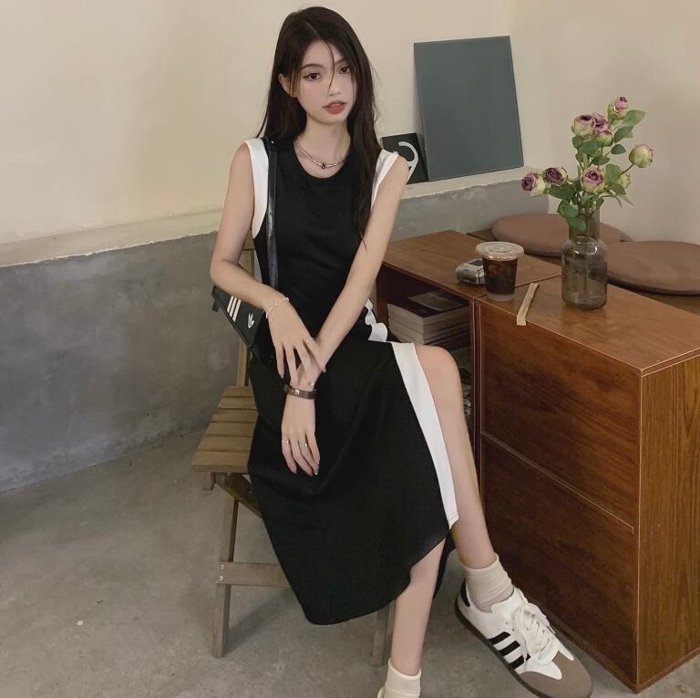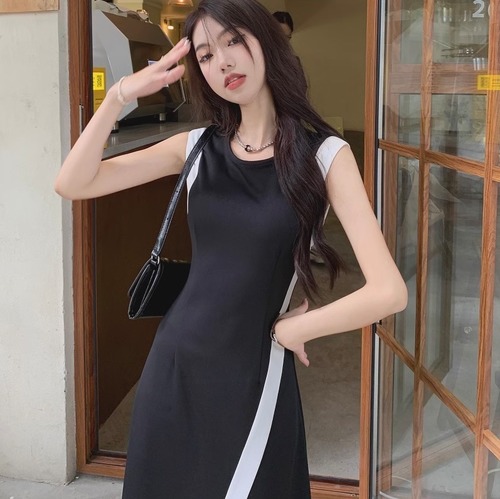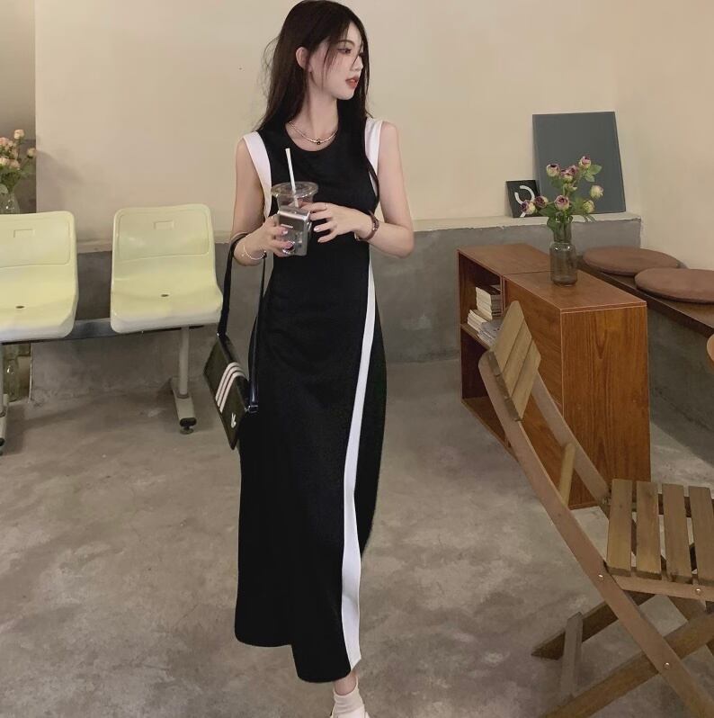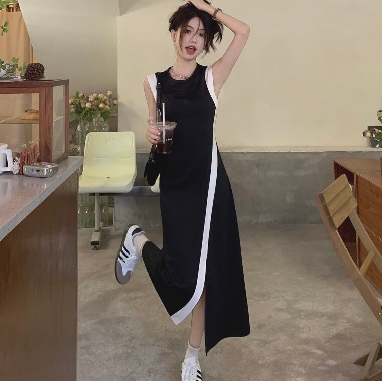 レディース ワンピース フレア ロング マキシ 9分丈 袖なし ノースリーブ Uネック ラウンドネック Aライン アシンメトリー フェミニン ストリート スリット サイドスリット ハイウエスト 切り替えデザイン 薄手 大人可愛い 上品 おしゃれ レトロ こなれ感 個性的 クール モード系 抜け感 都会的 セクシー 夏 お出かけ イベント リゾート 女子会 休日 バカンス カフェ 体型カバー 美脚 普段使い 着回し インスタ映え S M L 小さいサイズ 大きいサイズ 黒 ブラック バイカラー モノトーン