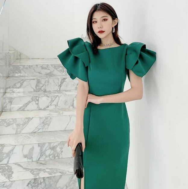 エレガントでモダンなロングマキシワンピース!華やかなパーティーシーンに最適。ボリュームフレアスリーブが高見えを叶えIラインのシルエットでスレンダーな印象に。さらにハイウエストで美脚を強調し、二の腕もカバーする優れた体型カバー効果を持つ一着です。無地のシンプルなデザインなので、様々なイベントに対応可能。夏の結婚式やパーティー、二次会、披露宴から謝恩会や演奏会、発表会まで、どんなシーンでも主役級の存在感のファッションで格上げしませんか? 色展開 グリーン サイズ S M L XL 2XL サイズ(cm) S /バスト 88〜92 /ウエスト 66〜76 /ヒップ 92〜102 /着丈 130 M /バスト 94〜98 /ウエスト 72〜82 /ヒップ 96〜108 /着丈 131 L /バスト 100〜104 /ウエスト 78〜88 /ヒップ 98〜112 /着丈 132 XL /バスト 106〜110 /ウエスト 84〜94 /ヒップ 108〜120 /着丈 133 2XL /バスト 112〜118 /ウエスト 90〜104 /ヒップ 114〜126 /着丈 134 ※モニターの仕様や、角度によって多少色合いが異なる場合がございます。 ※サイズは平置きで測定しております。測り方や位置、素材の性質によりサイズに1-4cm程の誤差が生じる場合がございます。 【商品について】 ・こちらの商品は海外お取り寄せ商品です。 ・お手元に到着するまでに10-25日程度お時間をいただいておりますが、さらにお時間がかかってしまう場合や、欠品や不具合などにより商品をご用意できずご注文をキャンセルとさせていただく場合もございます。予めご了承下さいませ。 ・商品はすべて検品を行なった上で発送しております。到着後は、できるだけ早めに商品の状態をご確認願います。 ・海外製品のため日本製よりも縫製や糸の始末が甘い、微細なほつれ、匂いや微細な汚れなどといった場合がございます。その場合には不具合品の対象外となりますのでご了承ください。 ・万が一、初期不良や誤納品がございましたら、商品到着より5日以内にお知らせ下さい。誠意を持って早急に対応させていただきます。 【返品について】 ご注文確定後のキャンセルや内容変更はお受けすることができません。 不良品または誤納品の場合を除き、返品・交換はお受けできませんのでご了承ください。 何かご不明な点などがございましたら、お気軽にお問い合せくださいませ。 op-1345