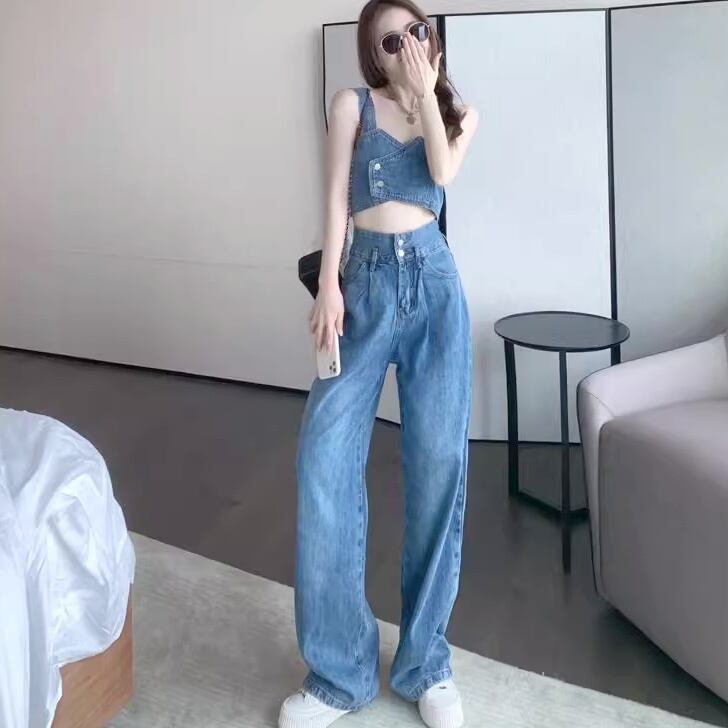 セットアップ Gパン デニムパンツ タンクトップ ショート ロング 丈長 フルレングス 袖なし ノースリーブ ストレート 背中開き ストリート バックコンシャス ハイウエスト アメカジ ギャザー デニム ブルーデニム 伸縮性 大人可愛い おしゃれ かっこいい レトロ こなれ感 ラフ ルーズ クール モード系 アクティブ ワイルド 無地 夏 パーティー イベント リゾート ビーチ 女子会 休日 バカンス ライブ カフェ フェス 脚長 インスタ映え S M L XL 小さいサイズ 大きいサイズ 水色 ブルー
