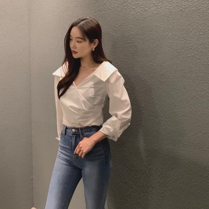 トップス シャツ ブラウス レディース 長袖 Vネック 襟付き ドレープ フェミニン タック コンサバ ギャザー 大人可愛い きれいめ 上品 おしゃれ かっこいい こなれ感 ガーリー ルーズ クール 都会的 ベーシック ロマンティック ナチュラル 無地 春 秋 デート お出かけ 女子会 休日 ショッピング 発表会 お花見 合コン コンパ カフェ 婚活 重ね着 体型カバー 普段使い 着回し 清楚 インスタ映え ゆったり ゆる フリーサイズ 白 ホワイト 黒 ブラック ベージュ 水色 ブルー ライトブルー