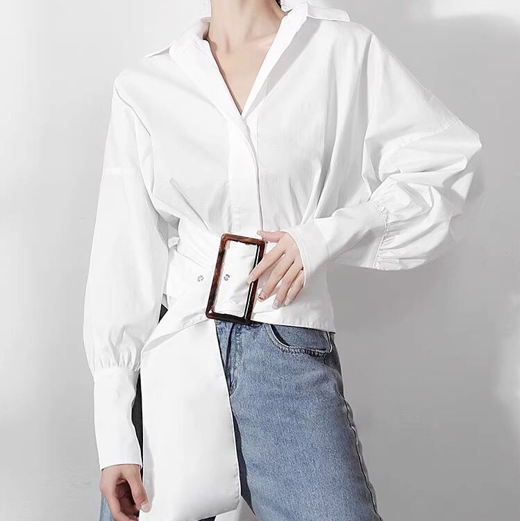 トップス シャツ ブラウス レディース 長袖 ボリューム袖 ドロップショルダー バルーン袖 Vネック 襟付き ウエストマーク 薄手 ベルト付き 大人可愛い 上品 おしゃれ かっこいい こなれ感 メンズライク マニッシュ 個性的 クール モード系 存在感 都会的 ラグジュアリー ワイルド 無地 春 秋 お出かけ パーティー イベント 女子会 休日 ショッピング ライブ カフェ 体型カバー 普段使い 着回し トレンド 流行 インスタ映え S M L 小さいサイズ 大きいサイズ 白 ホワイト ベーシックカラー