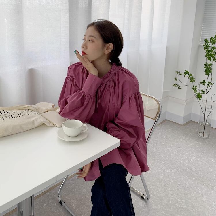 トップス シャツ ブラウス レディース 長袖 ボリューム袖 ドロップショルダー スタンドカラー りぼんタイ フェミニン フリル オーバーサイズ 薄手 かわいい 大人可愛い きれいめ シンプル おしゃれ レトロ ガーリー ルーズ ラブリー キュート ロマンティック ナチュラル 無地 春 秋 お出かけ イベント 旅行 女子会 休日 ショッピング カフェ 体型カバー 普段使い 着回し レイヤード モテ 清楚 トレンド 流行 インスタ映え ゆったり ゆる フリーサイズ 白 ホワイト 紫 緑 グリーン パープル
