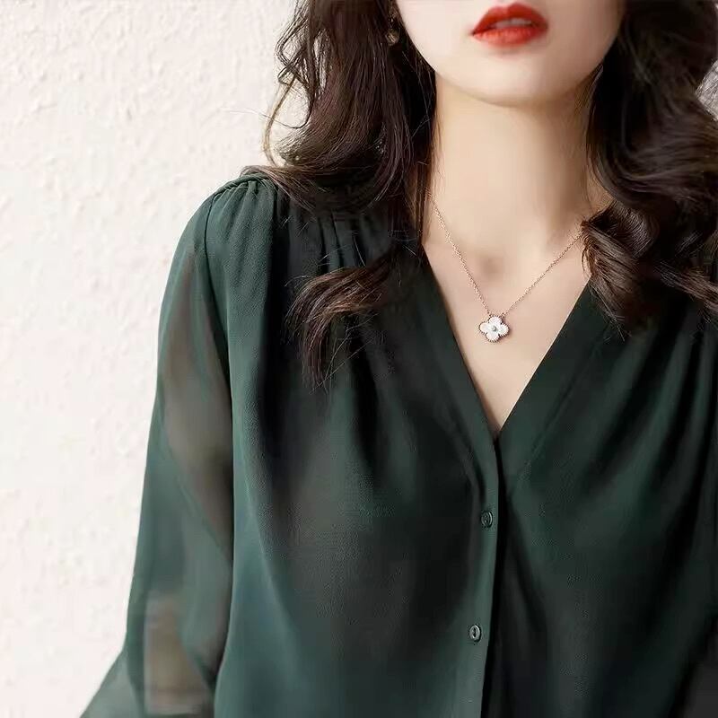 ブラウスの魅力が詰まったVネック長袖。シフォンの透け感とドレープがフェミニンな雰囲気を演出。シースルーの上品さがコンサバながらもモダンなスタイルを叶えます。春から秋までの薄手素材で、重ね着やレイヤードも楽しめます。洗練されたデザインで、お出かけからフォーマルな場面までこなれ感溢れる着こなしを。幅広いサイズ展開とカラーバリエーションで、どんなシーンでもおしゃれを楽しめます。 色展開 グリーン レッド ブラウン ブラック サイズ M L XL 2XL 3XL 4XL サイズ(cm) M /肩幅 40 /バスト 108 /袖丈 60 /袖口 35 /着丈 59〜62 L /肩幅 41 /バスト 112 /袖丈 61 /袖口 36 /着丈 60〜63 XL /肩幅 42 /バスト 116 /袖丈 62 /袖口 37 /着丈 61〜64 2XL /肩幅 43 /バスト 120 /袖丈 63 /袖口 38 /着丈 62〜65 3XL /肩幅 44 /バスト 124 /袖丈 64 /袖口 39 /着丈 63〜66 4XL /肩幅 45 /バスト 128 /袖丈 65 /袖口 40 /着丈 64〜67 ※モニターの仕様や、角度によって多少色合いが異なる場合がございます。 ※サイズは平置きで測定しております。測り方や位置、素材の性質によりサイズに1-4cm程の誤差が生じる場合がございます。 【商品について】 ・こちらの商品は海外お取り寄せ商品です。 ・お手元に到着するまでに10-25日程度お時間をいただいておりますが、さらにお時間がかかってしまう場合や、欠品や不具合などにより商品をご用意できずご注文をキャンセルとさせていただく場合もございます。予めご了承下さいませ。 ・商品はすべて検品を行なった上で発送しております。到着後は、できるだけ早めに商品の状態をご確認願います。 ・海外製品のため日本製よりも縫製や糸の始末が甘い、微細なほつれ、匂いや微細な汚れなどといった場合がございます。その場合には不具合品の対象外となりますのでご了承ください。 ・万が一、初期不良や誤納品がございましたら、商品到着より5日以内にお知らせ下さい。誠意を持って早急に対応させていただきます。 【返品について】 ご注文確定後のキャンセルや内容変更はお受けすることができません。 不良品または誤納品の場合を除き、返品・交換はお受けできませんのでご了承ください。 何かご不明な点などがございましたら、お気軽にお問い合せくださいませ。 ts-1867