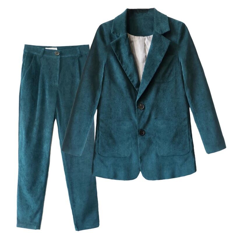 アウター ジャケット パンツ ボトムス スーツ セットアップ レディース テーパードパンツ スラックス アンクル丈 長袖 Vネック 襟付き ストリート ウエストマーク ポケット コーデュロイ カジュアル 上品 おしゃれ かっこいい レトロ ラフ メンズライク マニッシュ クール 抜け感 都会的 ラグジュアリー クラシカル ベーシック 無地 秋 冬 お出かけ パーティー イベント 女子会 カフェ 体型カバー 美脚 脚長 着回し レイヤード S M L XL 小さいサイズ 大きいサイズ 深緑 緑 グリーン