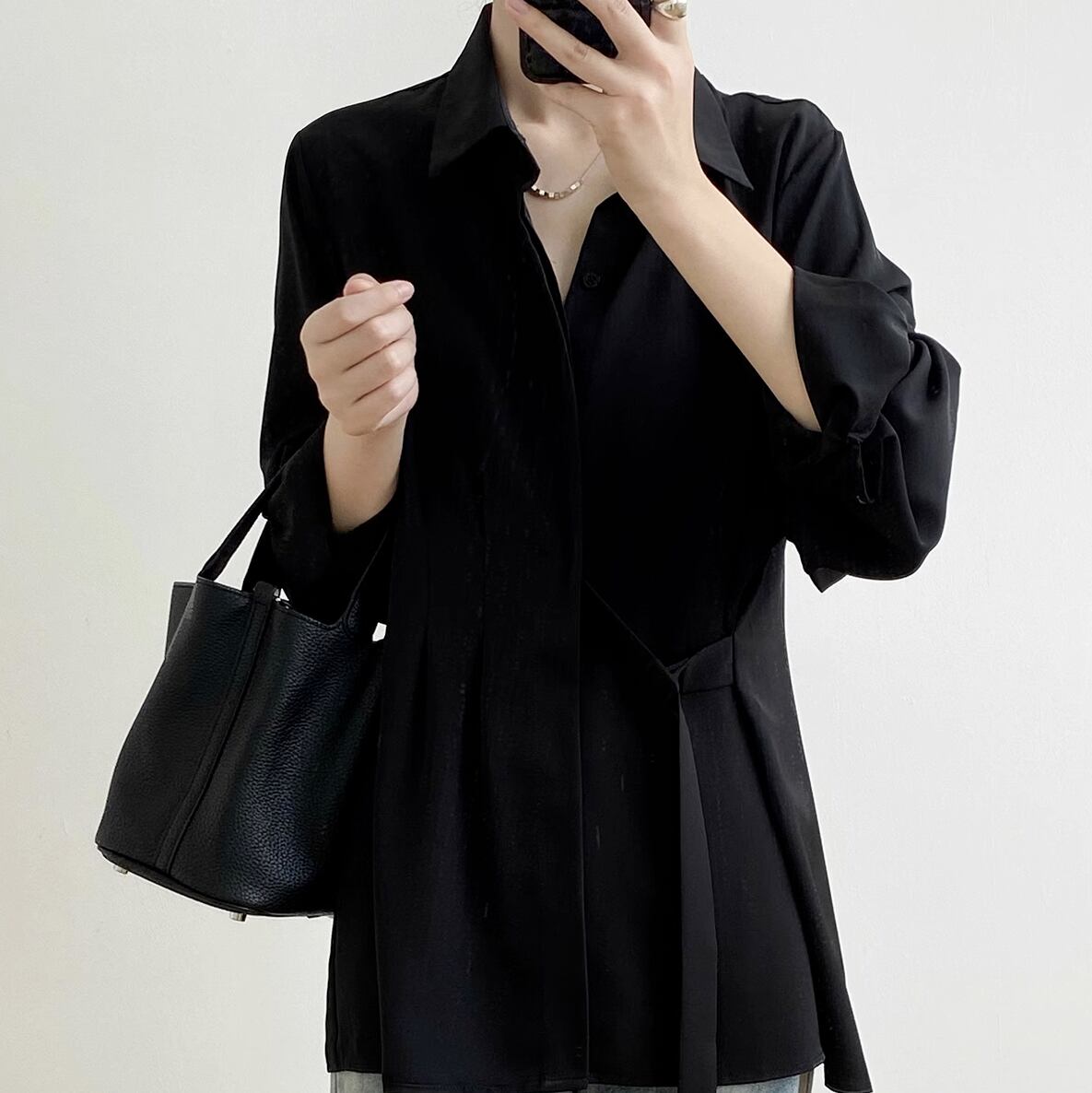 トップス シャツ ブラウス レディース 前開き ロング 長袖 Vネック 襟付き 角襟 オーバーサイズ フェミニン ストリート ボーイフレンド ボタン ヴィンテージ アメカジ かわいい 大人可愛い きれいめ シンプル カジュアル おしゃれ かっこいい レトロ こなれ感 ラフ メンズライク マニッシュ ボーイッシュ ルーズ クール 抜け感 ベーシック アクティブ ナチュラル 無地 春 秋 お出かけ 重ね着 韓国 オルチャン 体型カバー 普段使い 着回し レイヤード S M L XL 黒 ブラック カーキ