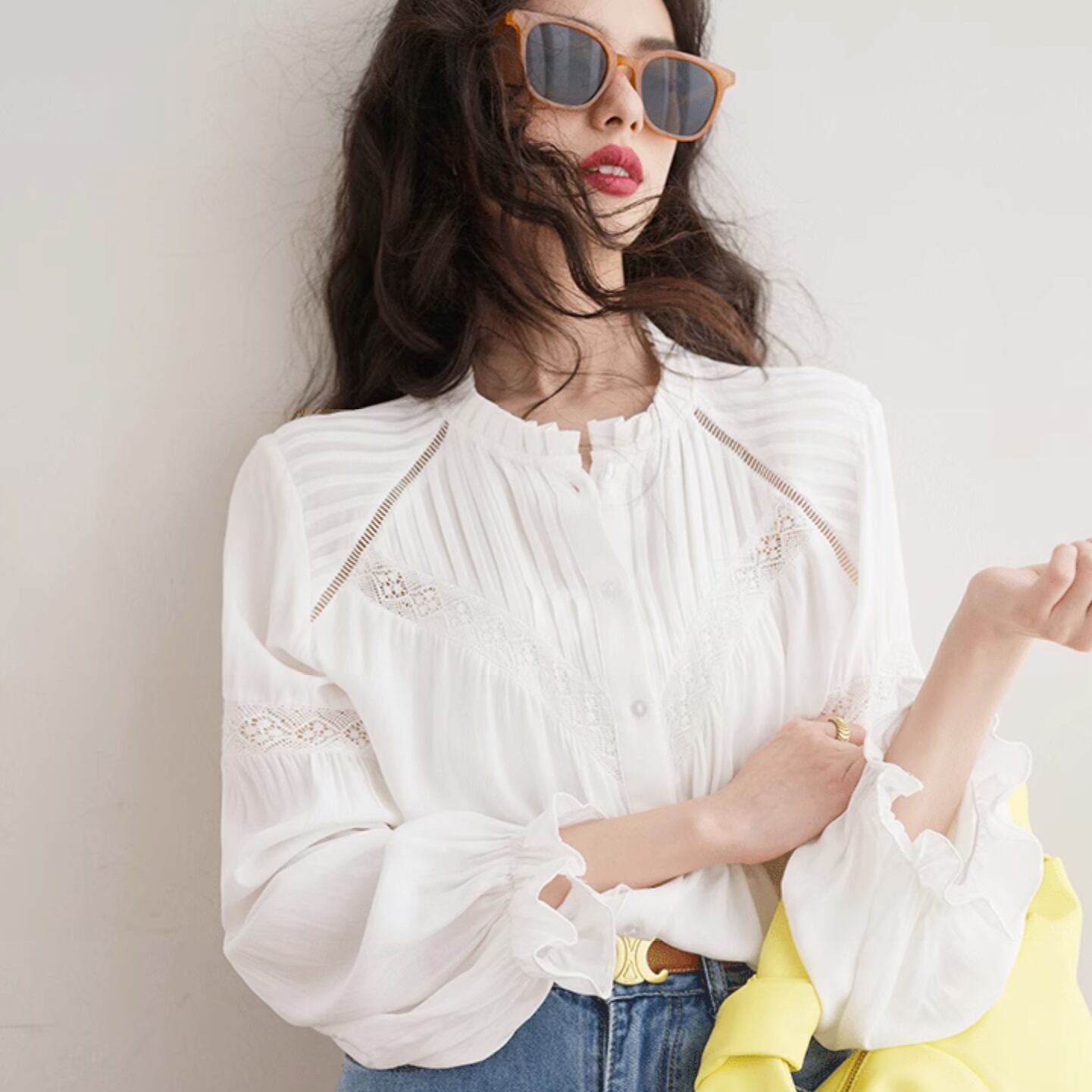 トップス シャツ ブラウス レディース 長袖 ボリューム袖 Uネック フェミニン プリーツ タック タックプリーツ 透け感 シースルー 薄手 かわいい 大人可愛い シンプル おしゃれ こなれ感 ガーリー 抜け感 ラブリー キュート ロマンティック ナチュラル 無地 春 秋 学生 学校 通学 デート お出かけ 旅行 レストラン 公園 女子会 休日 ショッピング ライブ カフェ 重ね着 普段使い 着回し レイヤード モテ トレンド 流行 インスタ映え S M L XL 小さいサイズ 大きいサイズ 白 ホワイト