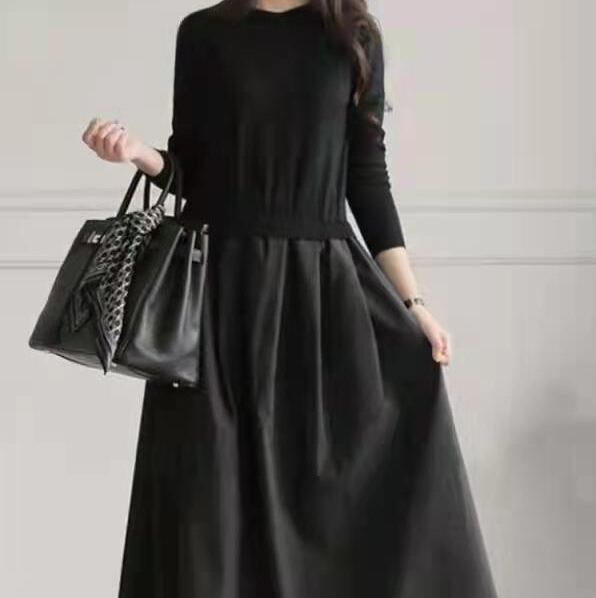 ワンピース レディース フレア ロング 長袖 Uネック フレア Aライン フェミニン コンサバ 切り替えデザイン ドッキング ニット かわいい 大人可愛い きれいめ シンプル 上品 おしゃれ かっこいい レトロ こなれ感 ガーリー エレガント モダン ラブリー キュート クラシカル ベーシック ナチュラル 無地 チェック 格子柄 春 秋 冬 お出かけ 女子会 休日 カフェ 体型カバー 普段使い 着回し トレンド 流行 インスタ映え 定番 ゆったり ゆる フリーサイズ 黒 ブラック ネイビー 緑 グリーン