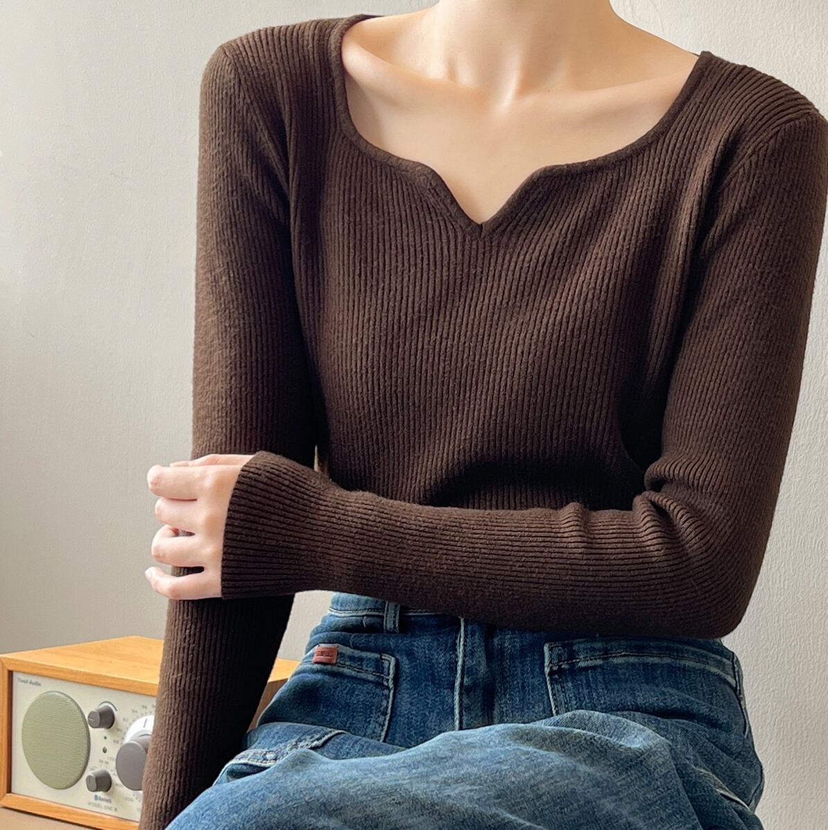 トップス ニット セーター レディース 長袖 Vネック 襟付き 角襟 スリム 細身 スマート フェミニン ストリート リブニット かわいい 大人可愛い シンプル カジュアル おしゃれ かっこいい こなれ感 ラフ スポーティー ガーリー クール 抜け感 ヴィンテージ ラブリー キュート ベーシック プレッピー アクティブ ナチュラル 無地 デート お出かけ イベント 休日 モノトーン 重ね着 韓国 オルチャン 楽ちん 普段使い 着回し レイヤード トレンド 流行 定番 S M L グレー ベージュ ピンク