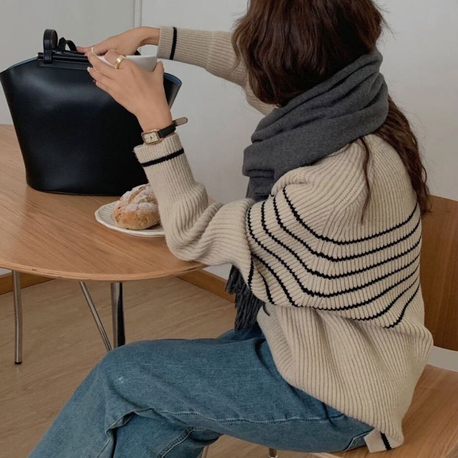 トップス ニット セーター 長袖 ラウンドネック フェミニン ストリート ニット リブニット かわいい 大人可愛い シンプル カジュアル おしゃれ こなれ感 ラフ メンズライク マニッシュ ボーイッシュ ガーリー カレッジ風 学生風 ベーシック カントリー アクティブ ナチュラル ボーダー 秋 冬 デート お出かけ 女子会 休日 カフェ 重ね着 暖かい 防寒 普段使い 着回し レイヤード モテ 清楚 トレンド 流行 インスタ映え ゆったり ゆる フリーサイズ 白 ホワイト ライトグレー ネイビー